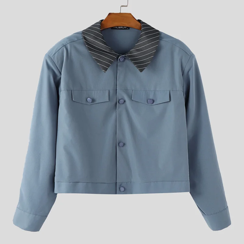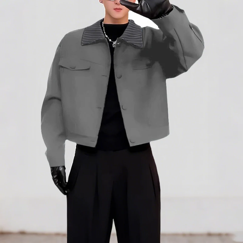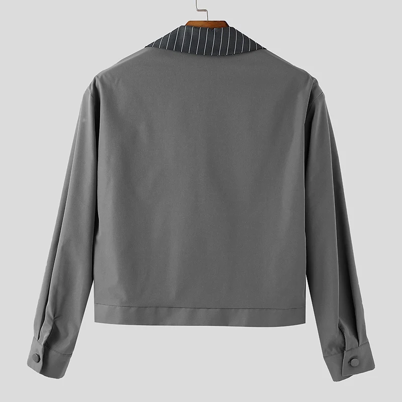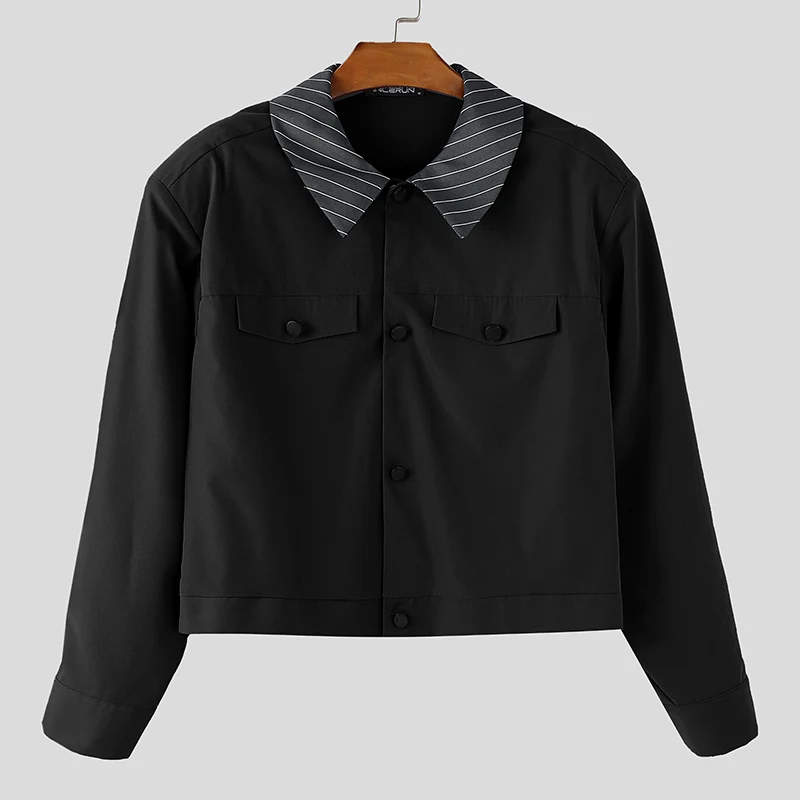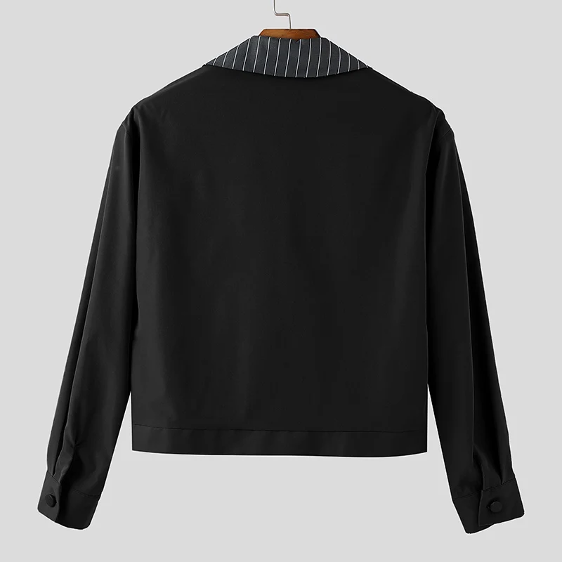 INCERUN Mens Patchwork Lapel Cropped Streetwear Jacket