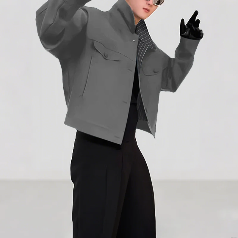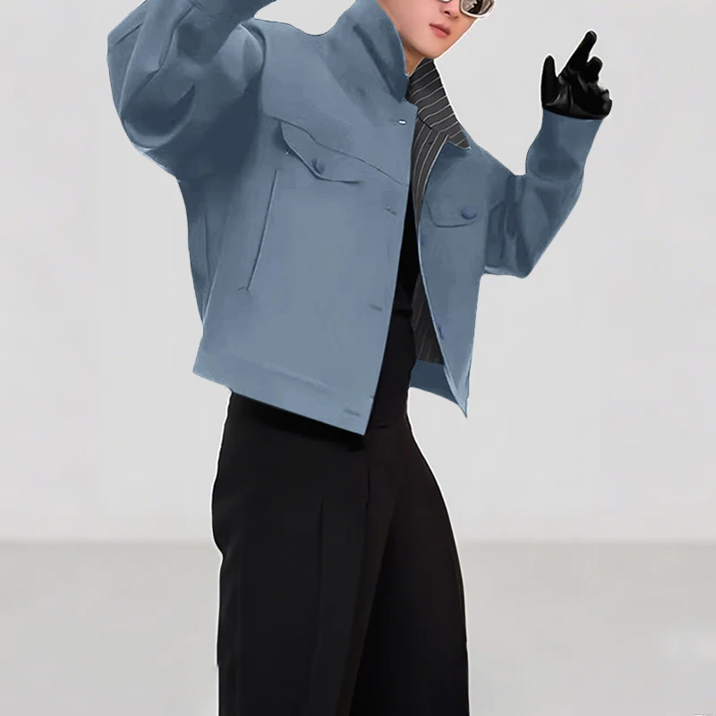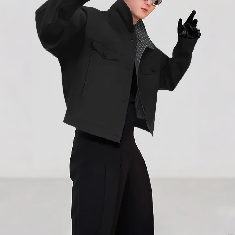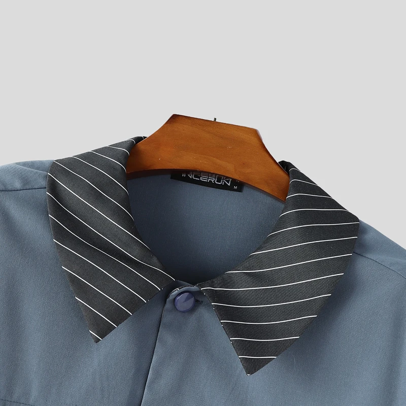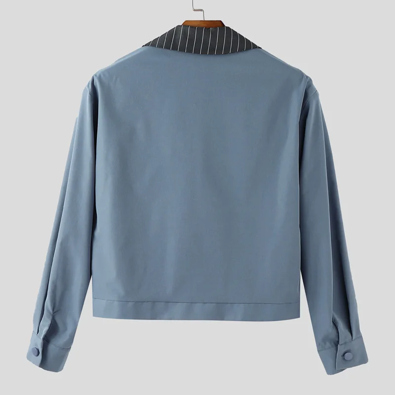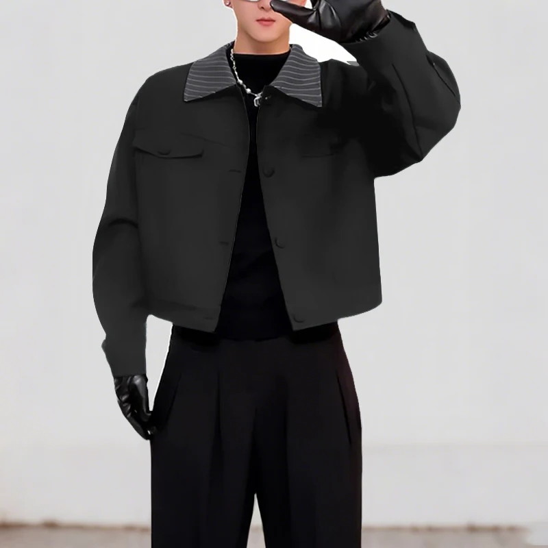 INCERUN Mens Patchwork Lapel Cropped Streetwear Jacket