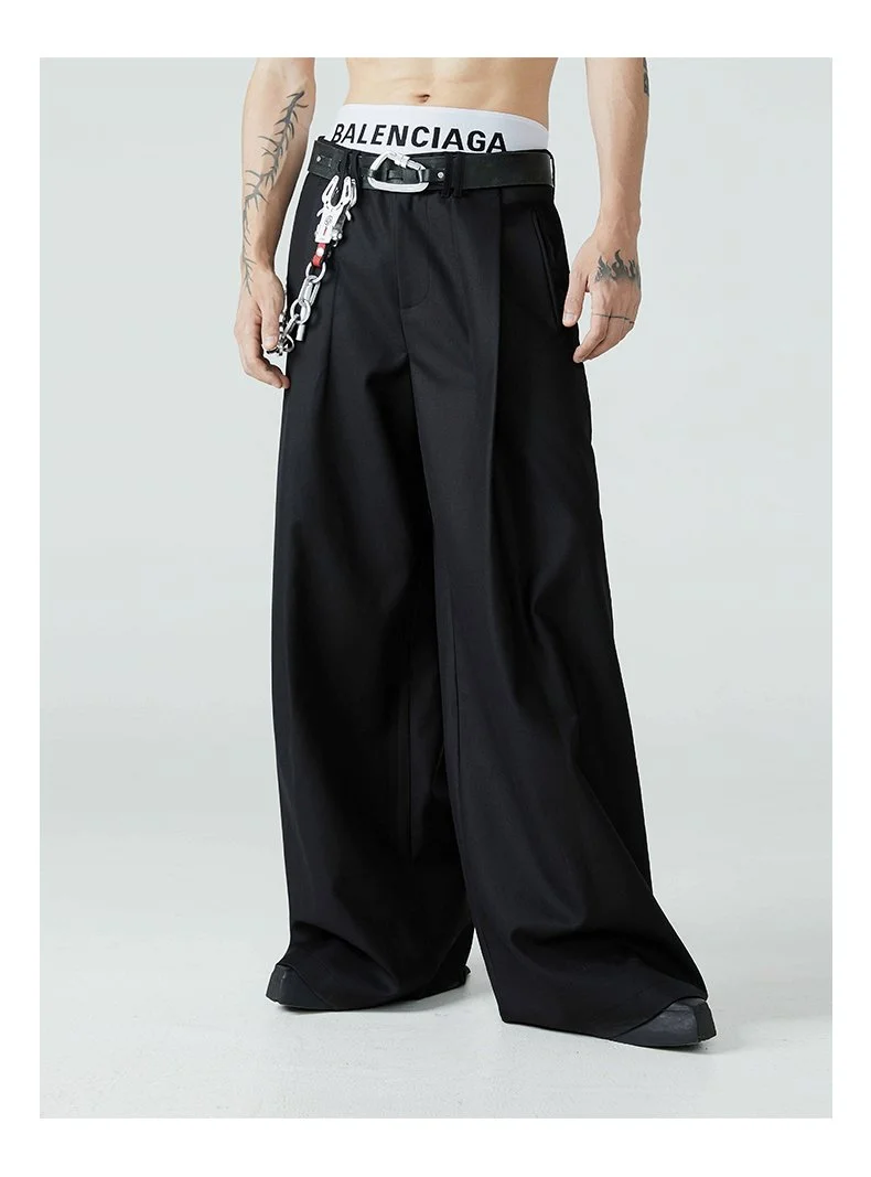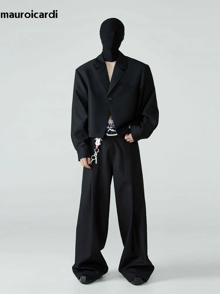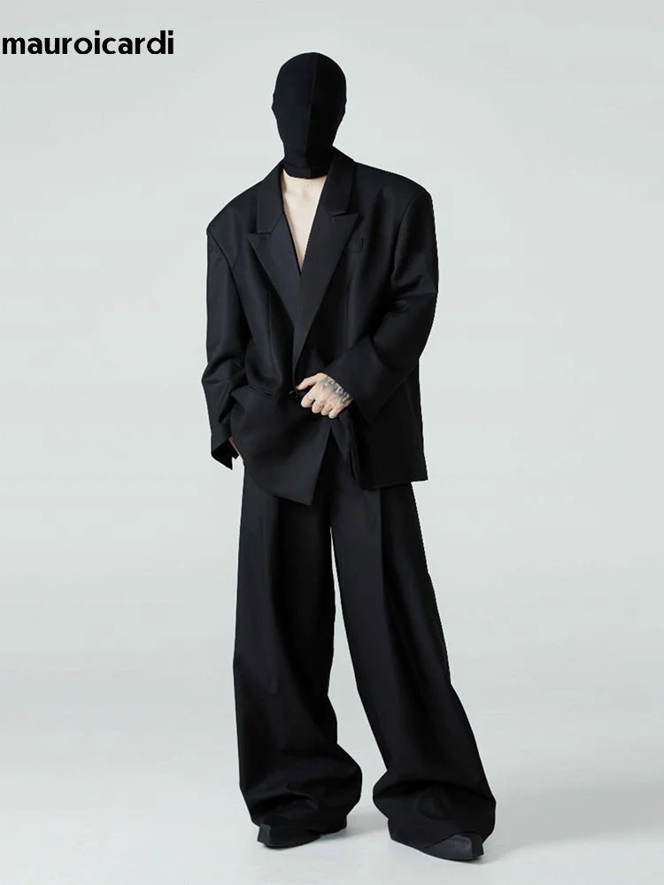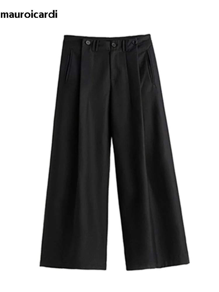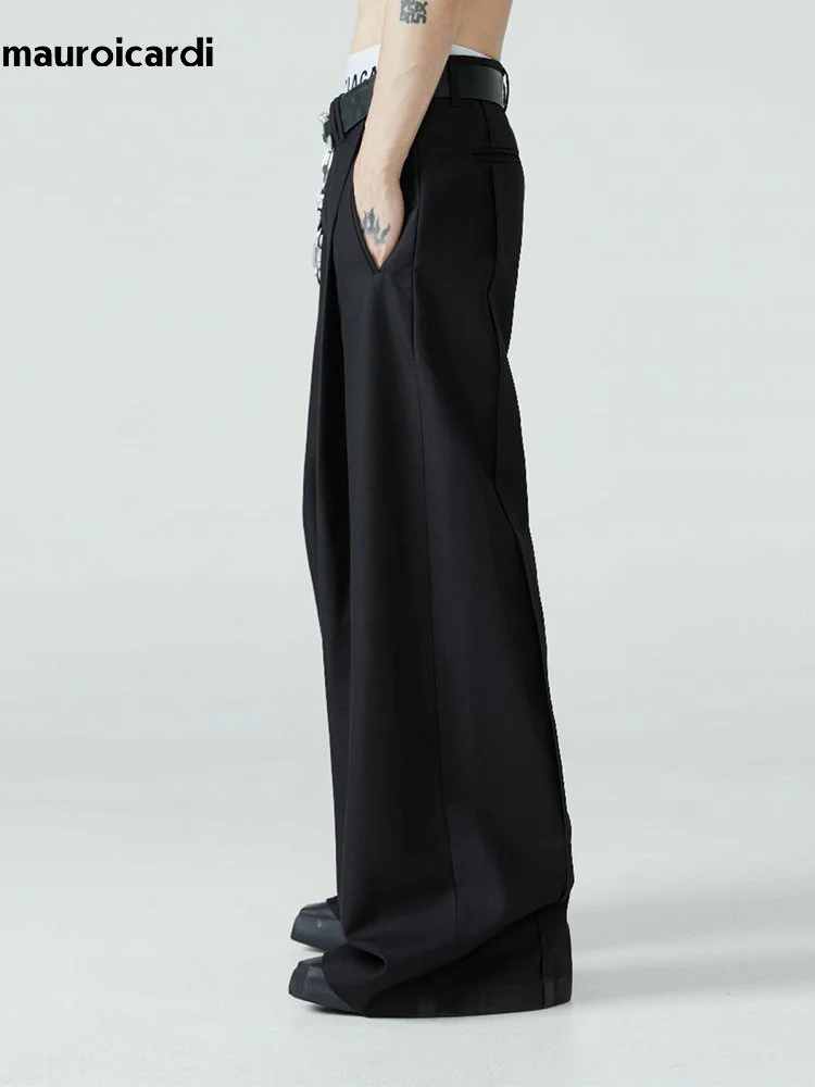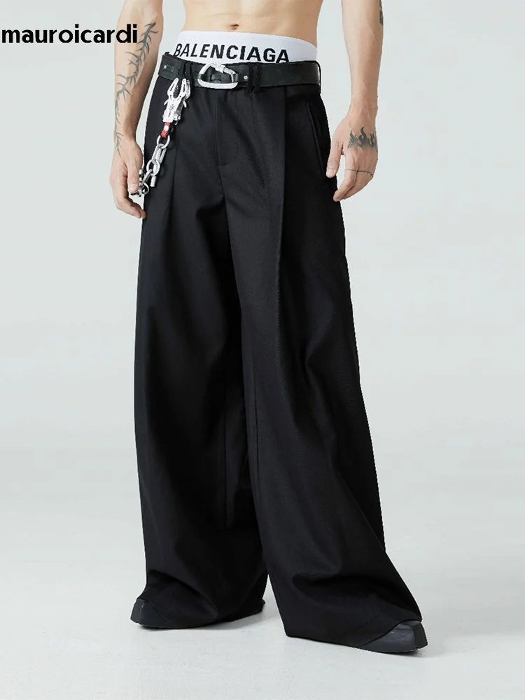 Mauroicardi Long Loose Casual Baggy Flowy Pleated Wide Leg Pants