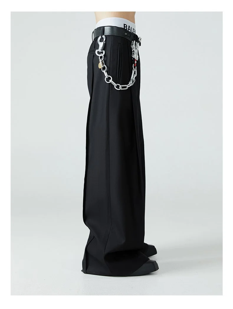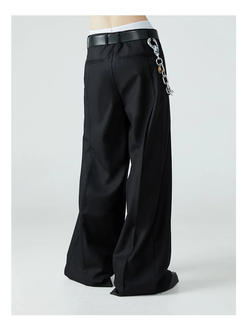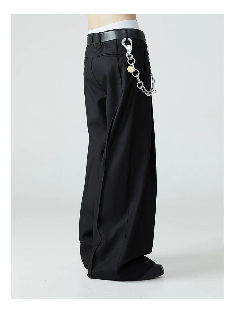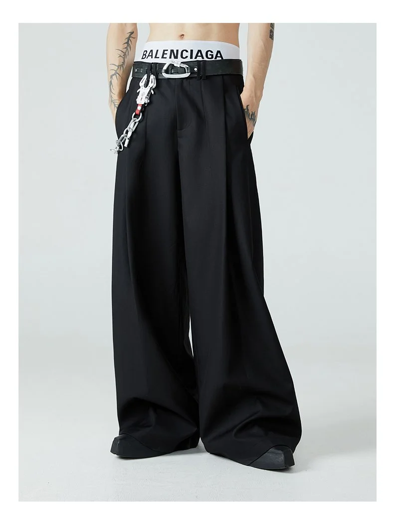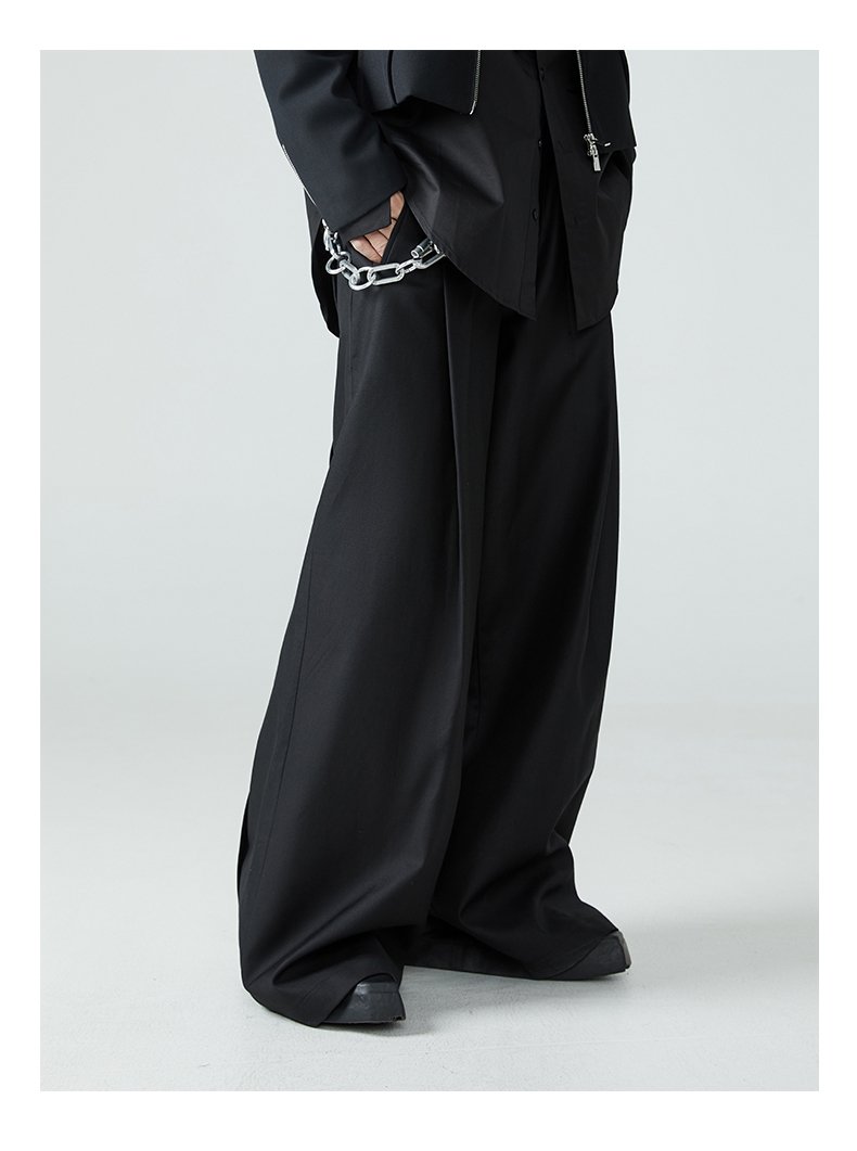 Mauroicardi Long Loose Casual Baggy Flowy Pleated Wide Leg Pants
