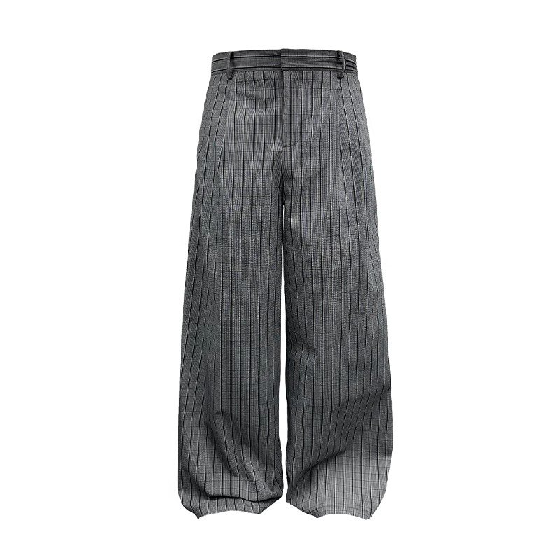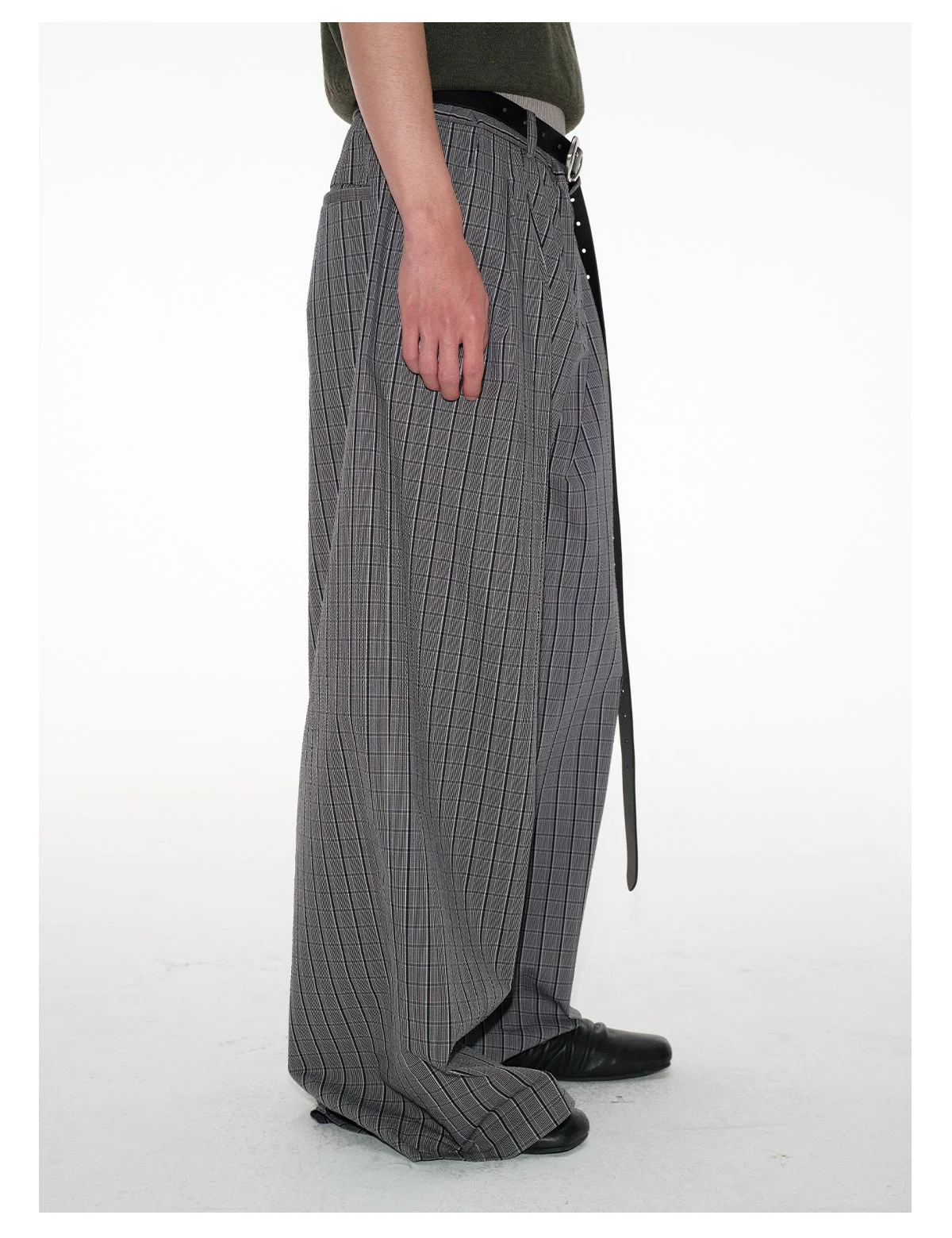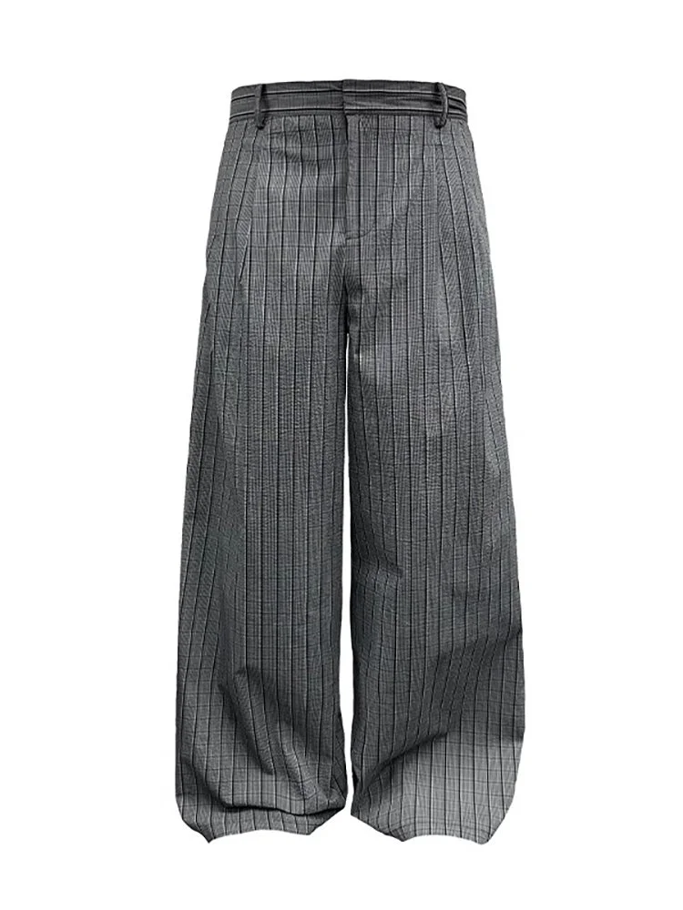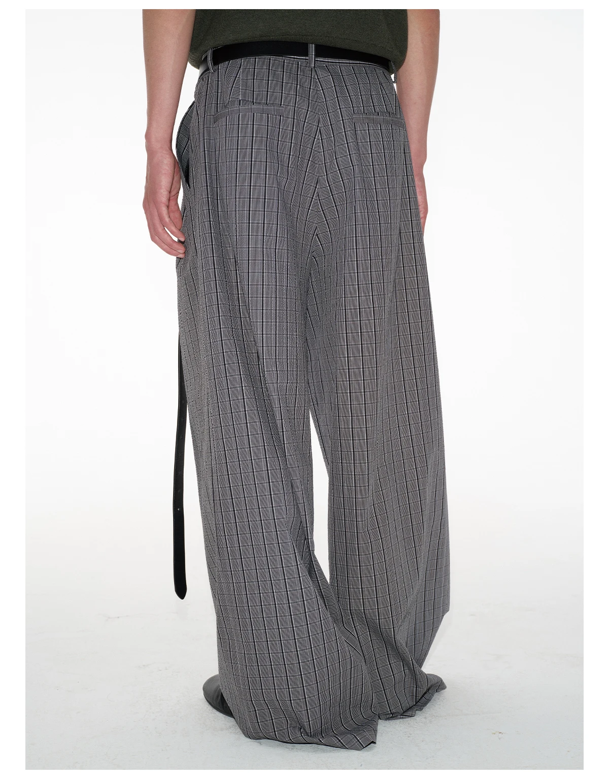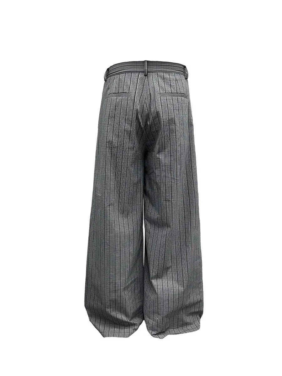 Mauroicardi Oversized Long Flowy Baggy Grey Plaid Wide Leg Pants