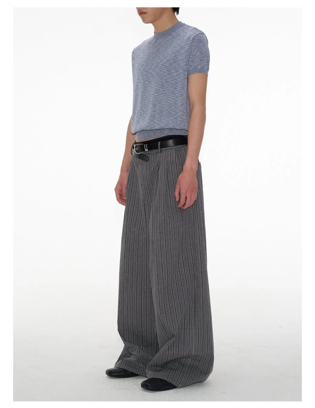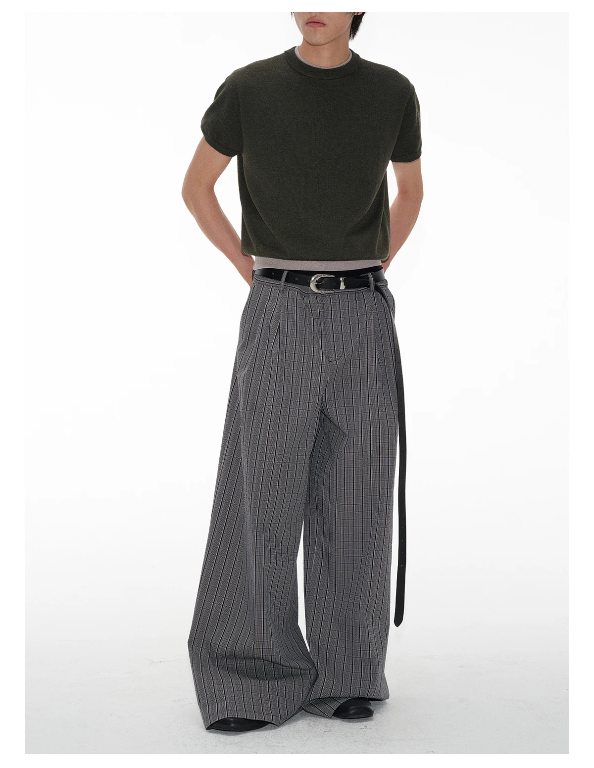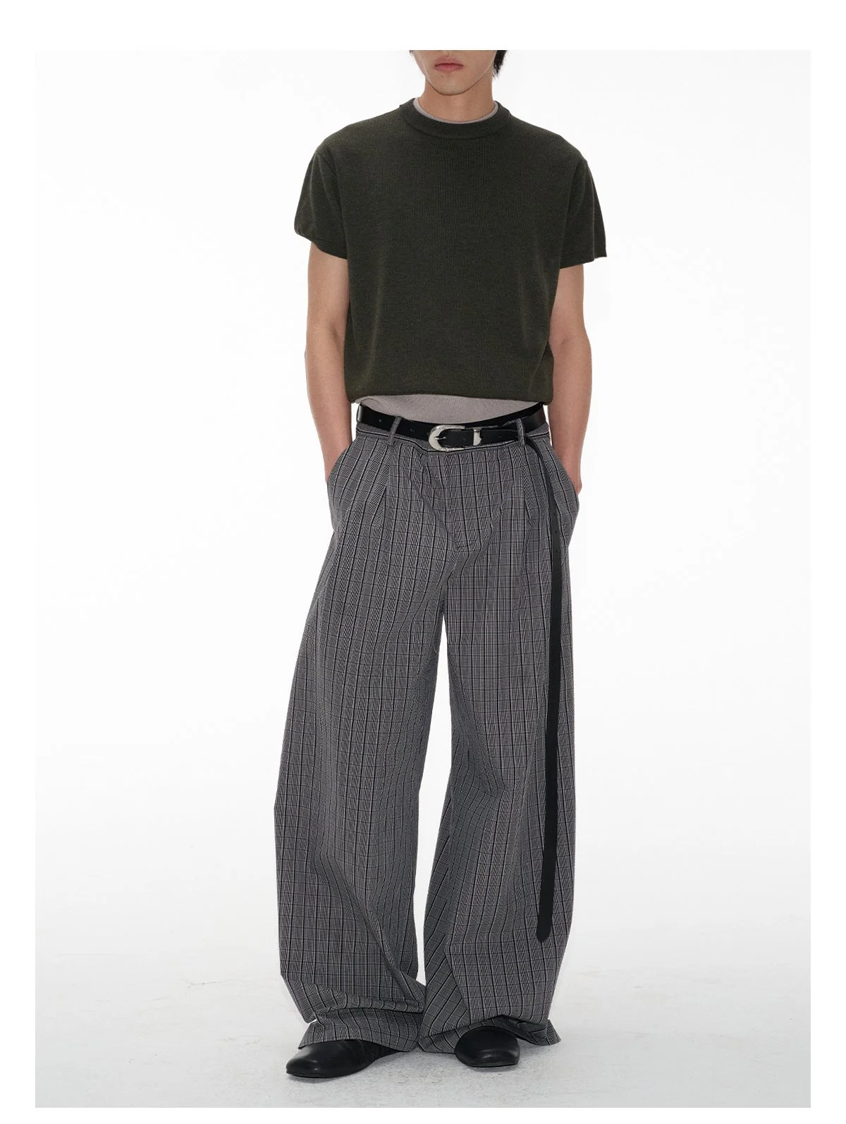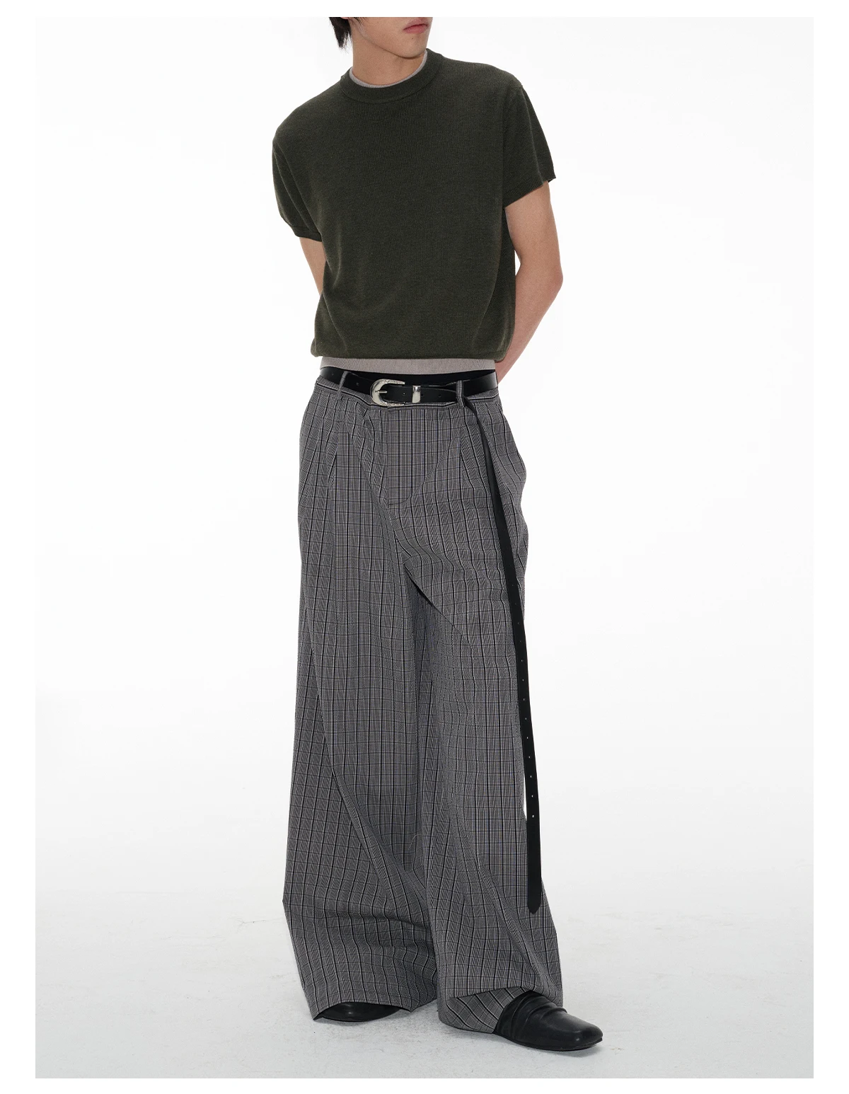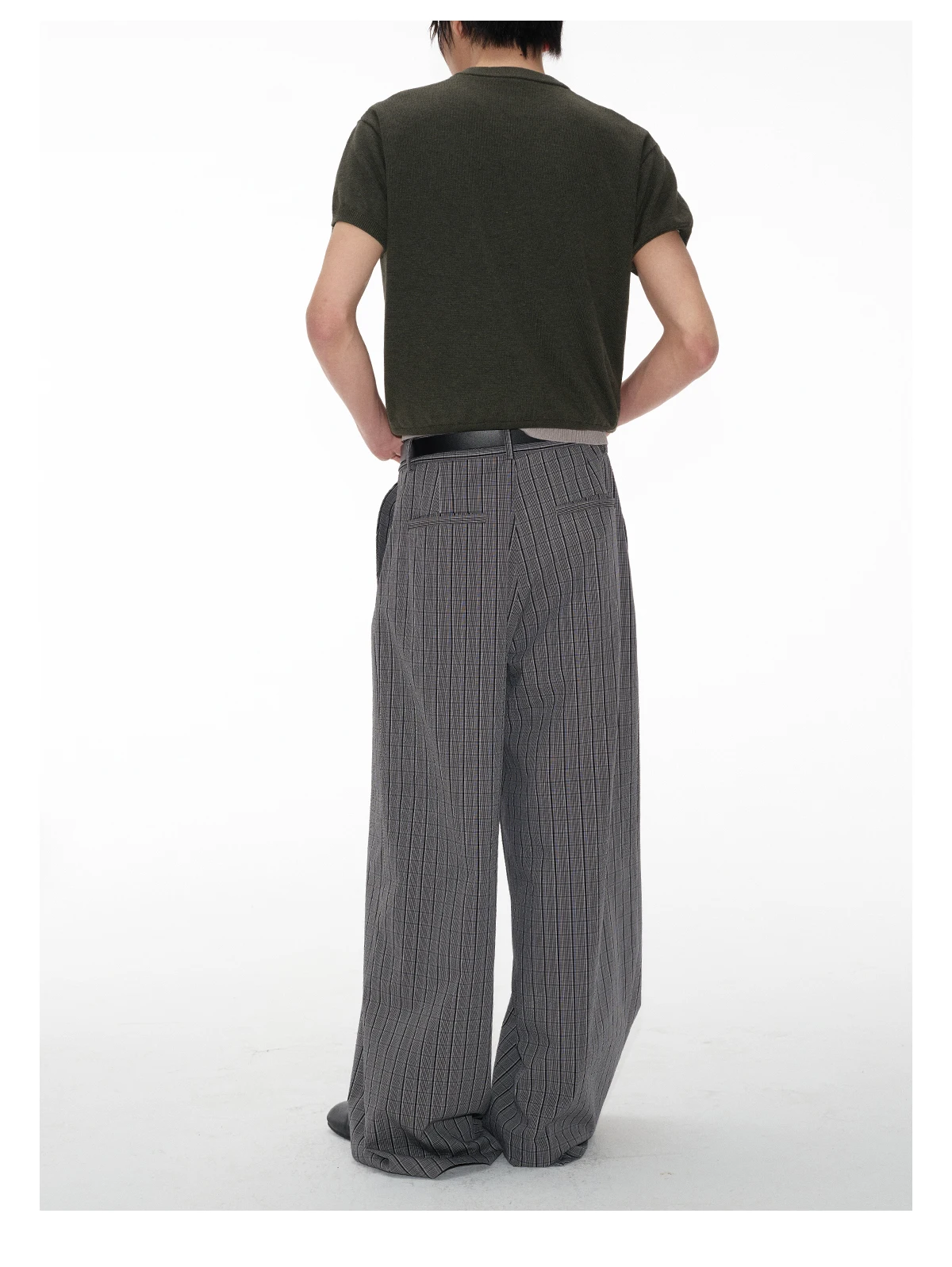 Mauroicardi Oversized Long Flowy Baggy Grey Plaid Wide Leg Pants