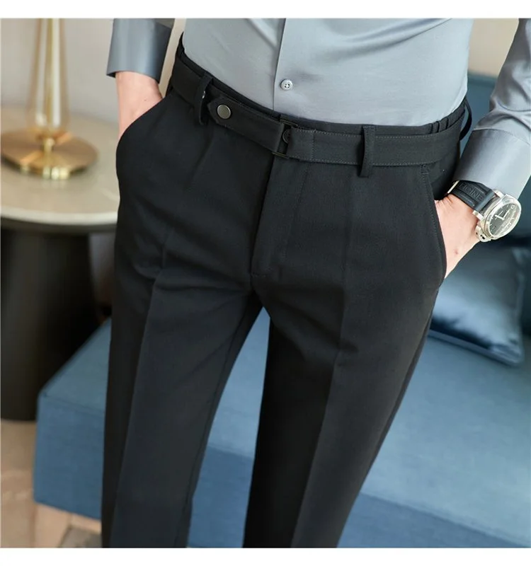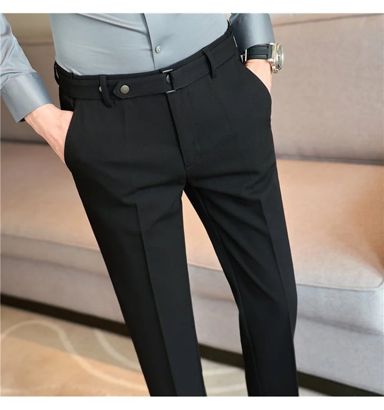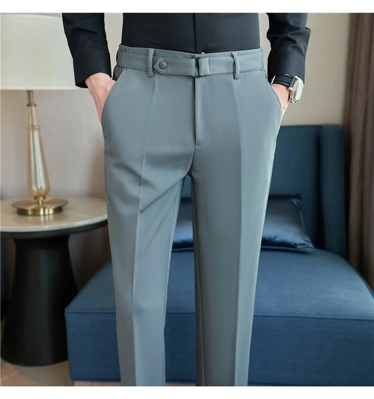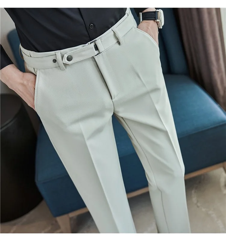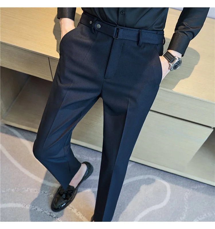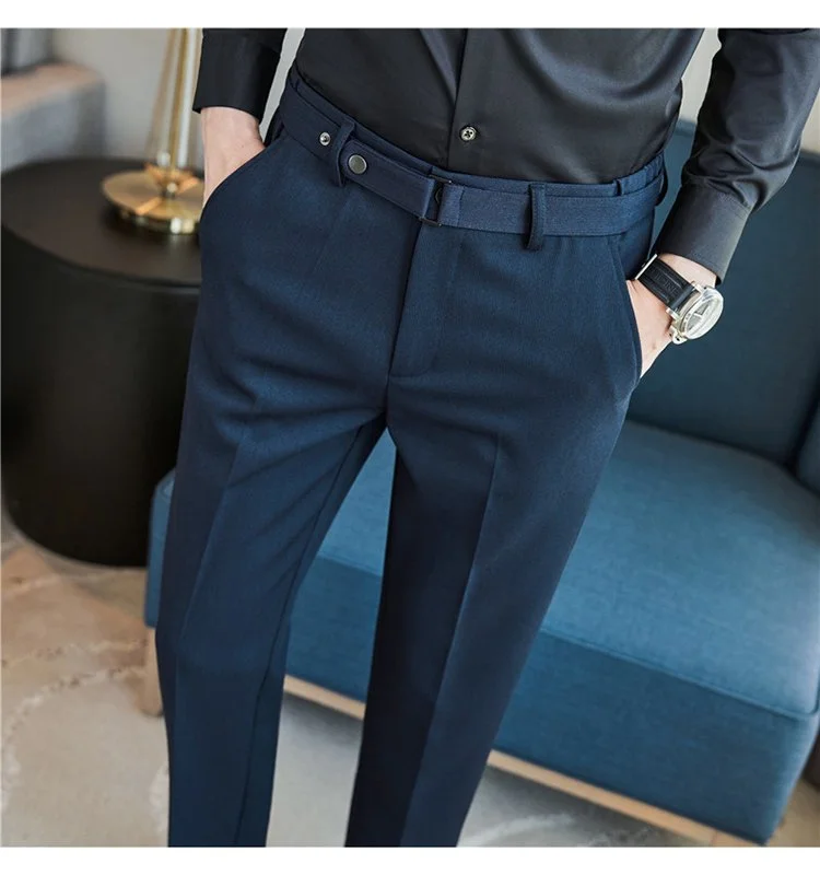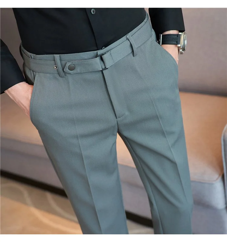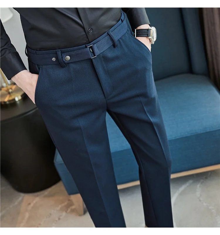 Men's Fashion Belt Design Suit Pants Formal Trousers