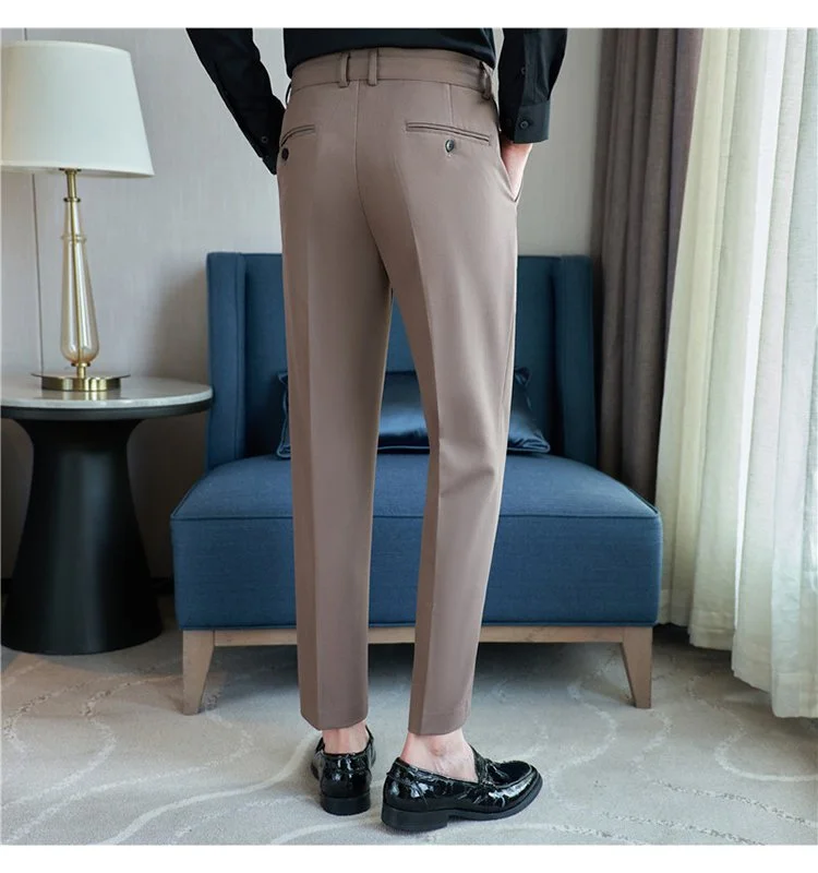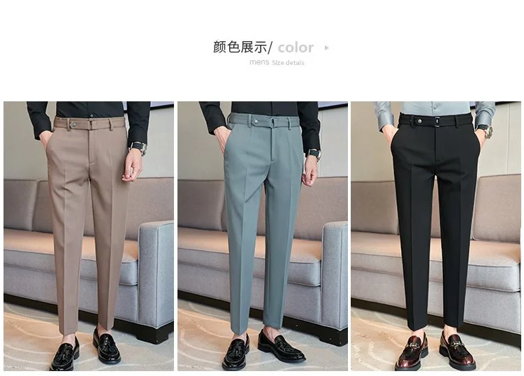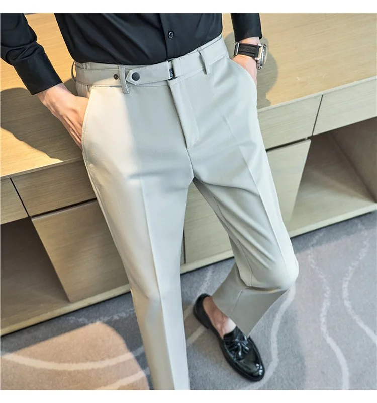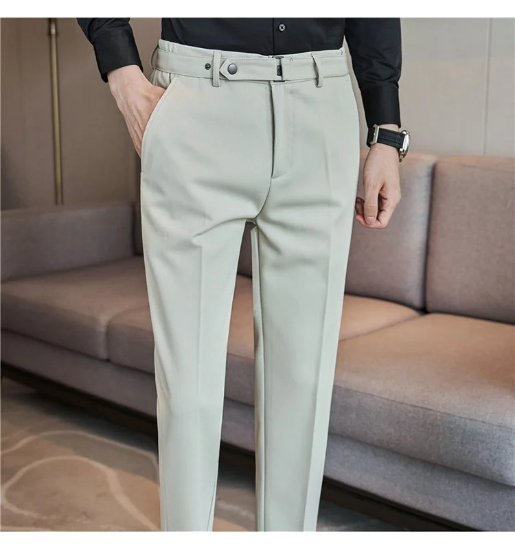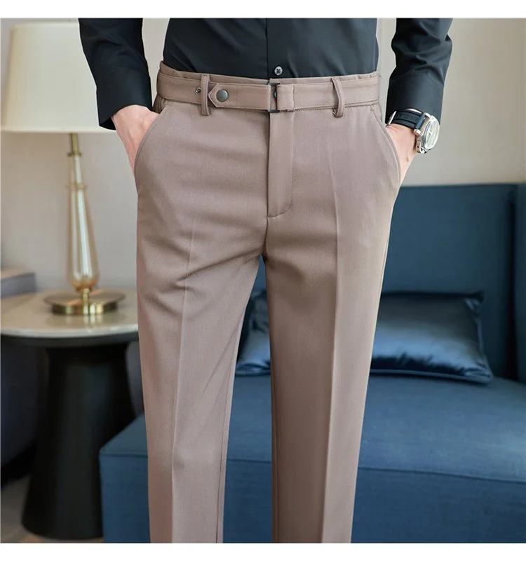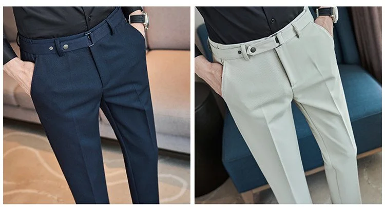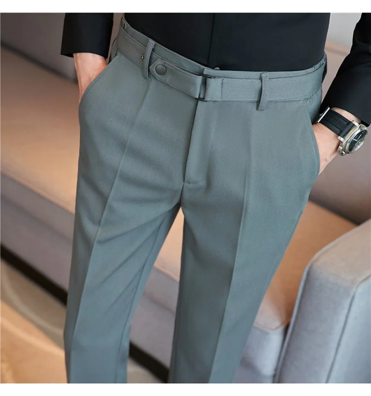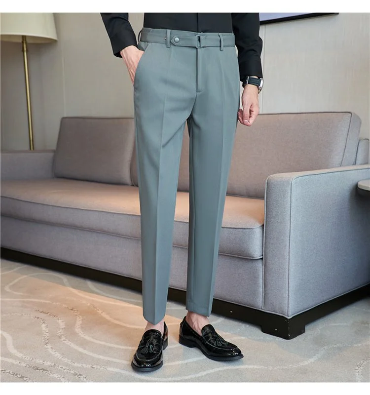 Men's Fashion Belt Design Suit Pants Formal Trousers