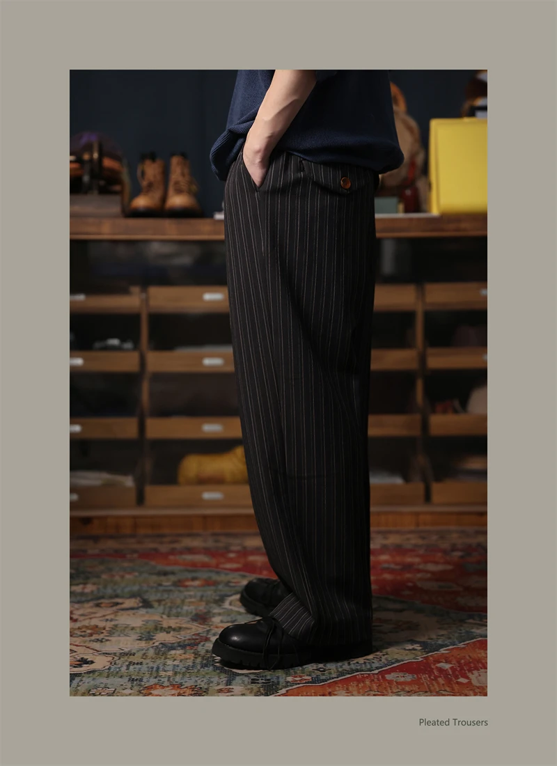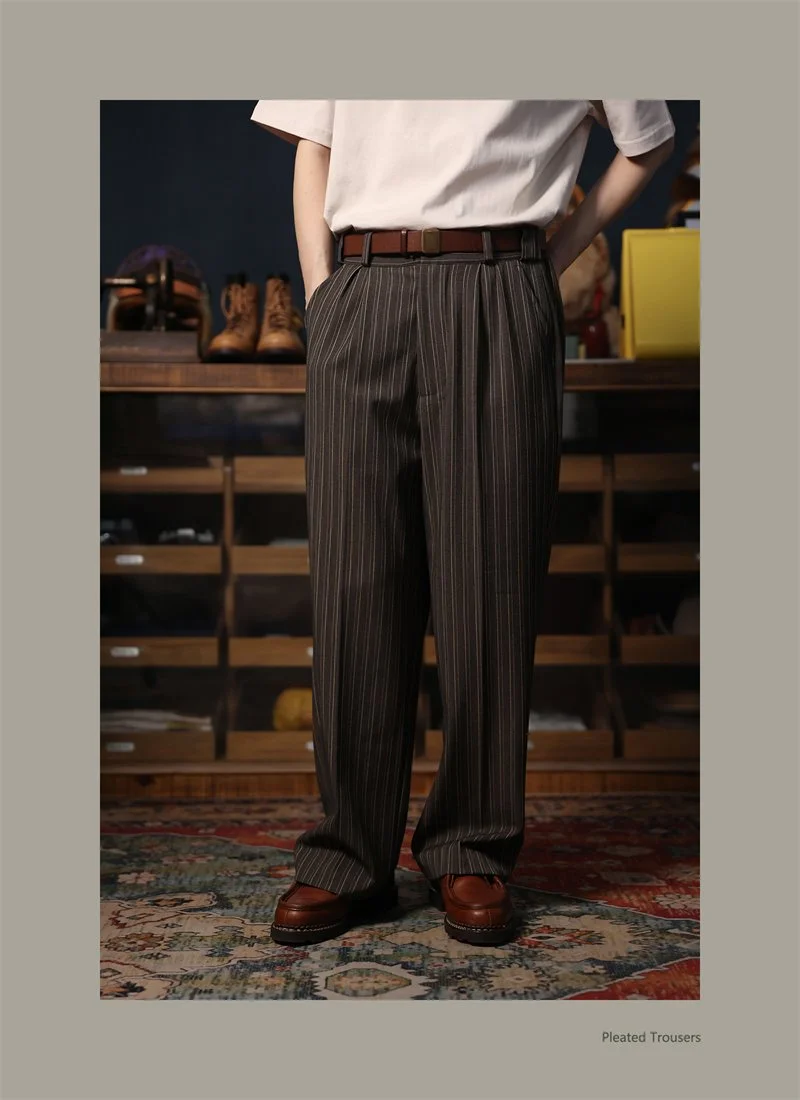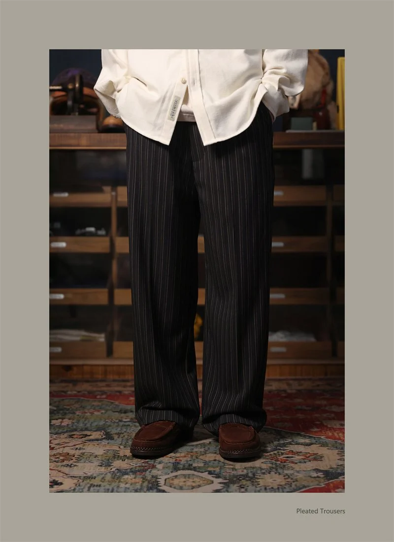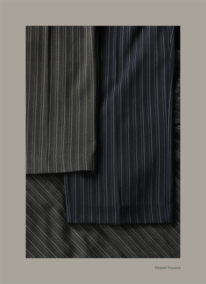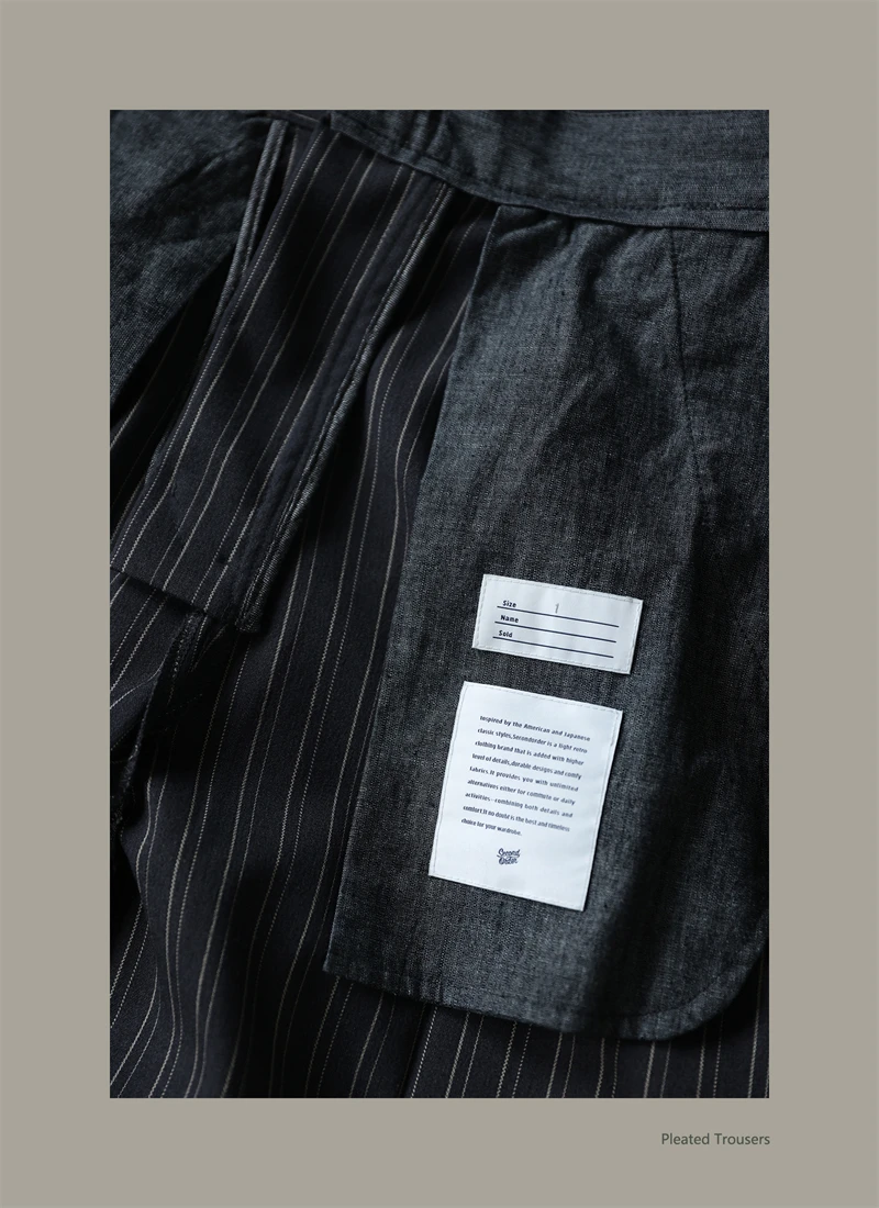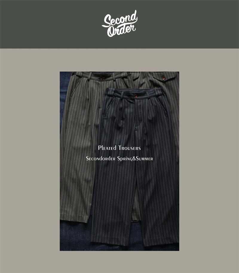 Second Order Pleated Pinstripe Causal Pants Semi-Formal Suit Trousers Loose Straight Fit