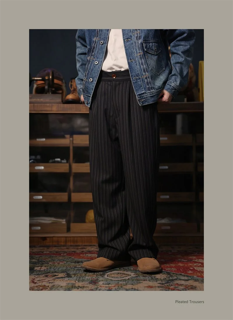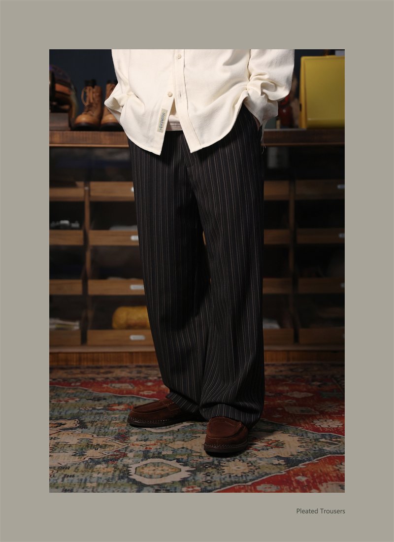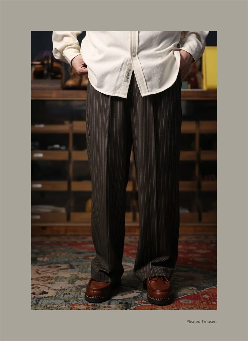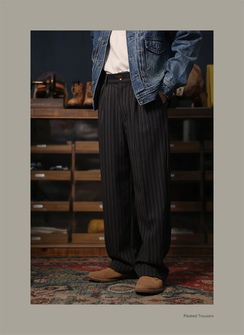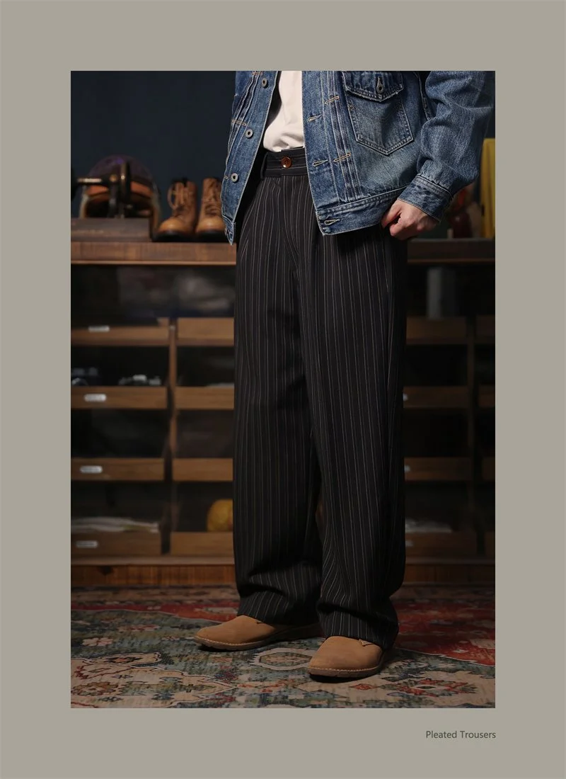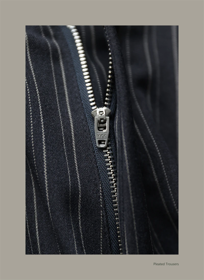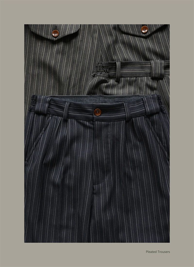 Second Order Pleated Pinstripe Causal Pants Semi-Formal Suit Trousers Loose Straight Fit