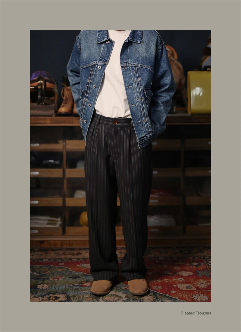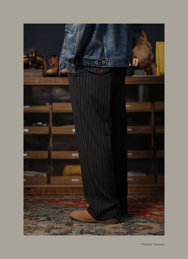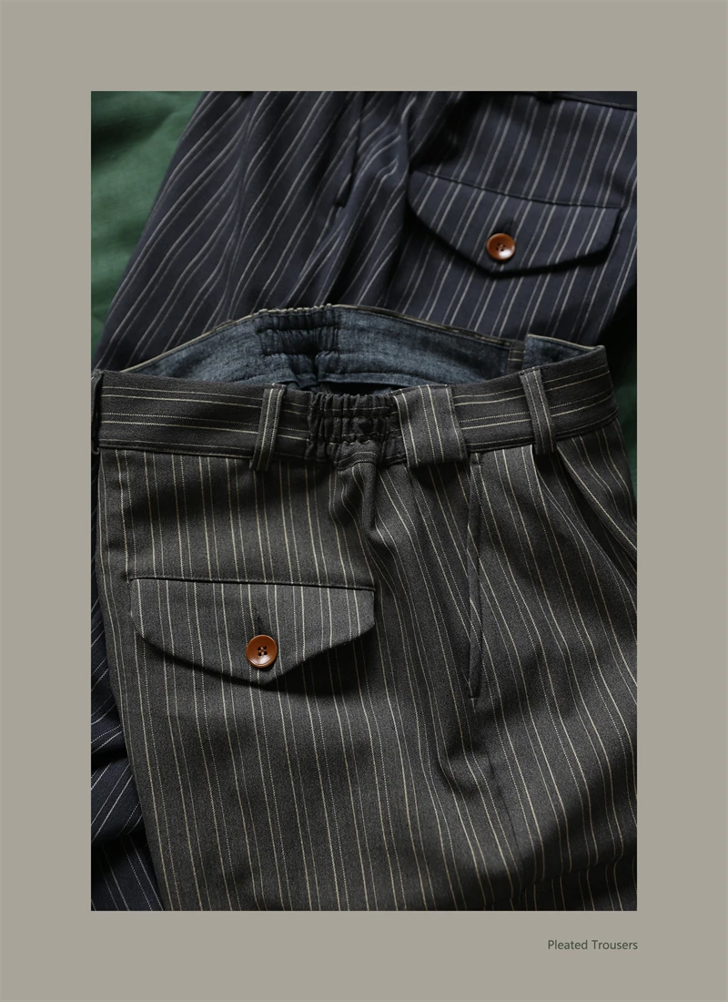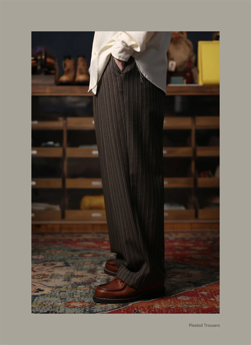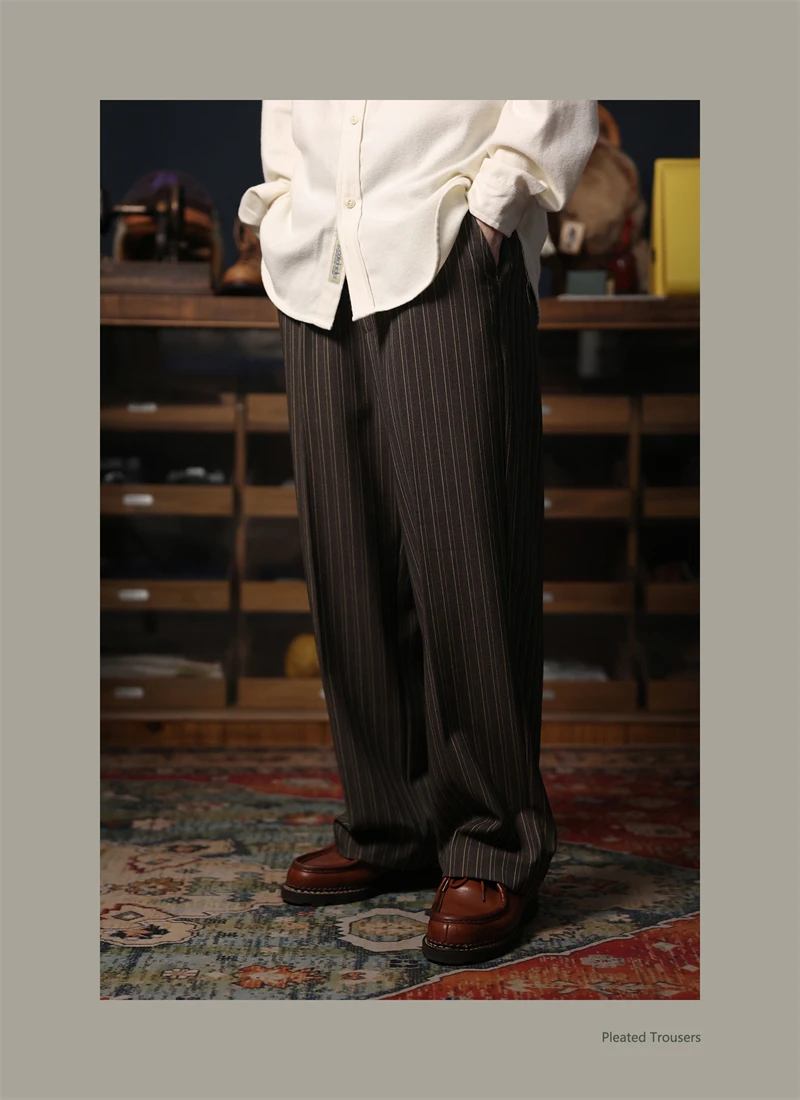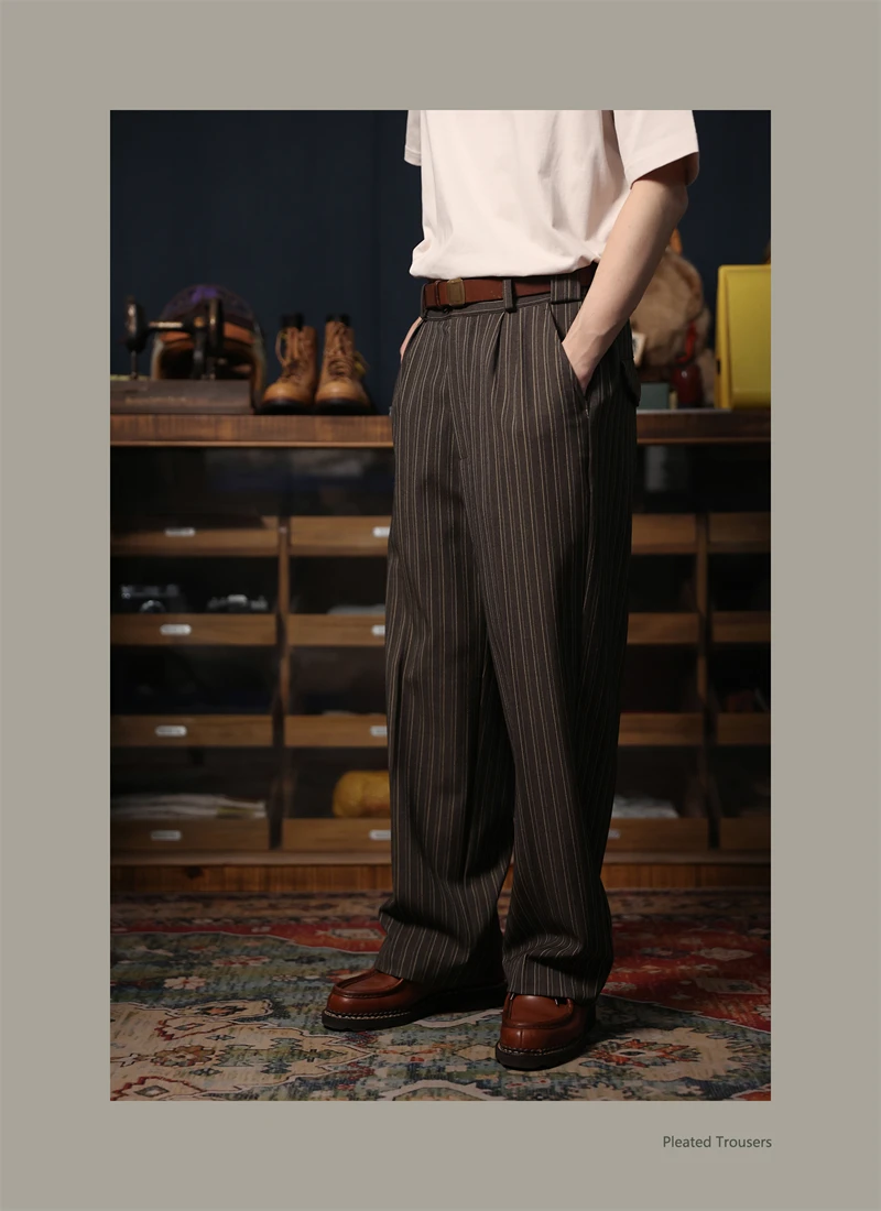 Second Order Pleated Pinstripe Causal Pants Semi-Formal Suit Trousers Loose Straight Fit