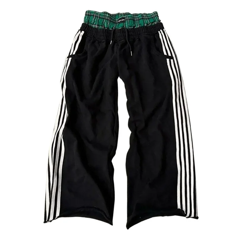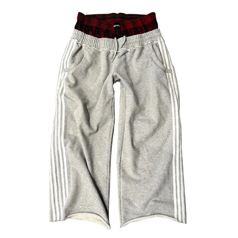 Y2K Retro Pants Harajuku Double Embroidered Waist Sweatpants Hip Hop Goth Clothes Fashion Wide Leg Baggy Pants Streetwear Unisex