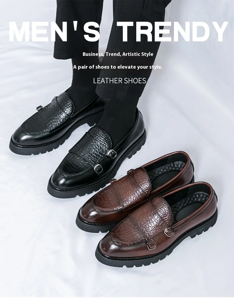 New double-button casual leather shoes