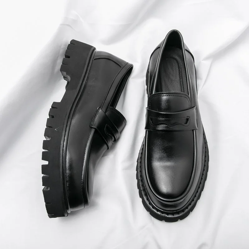 New Platform Slip On Loafers Shoes Men Thick-soled