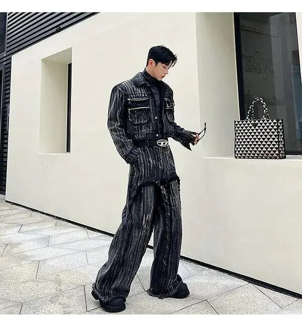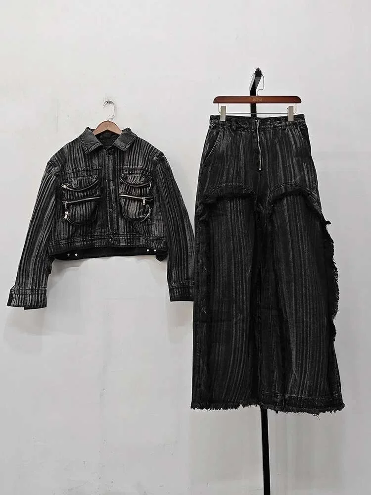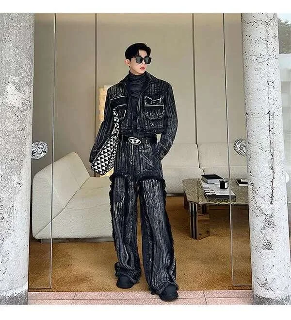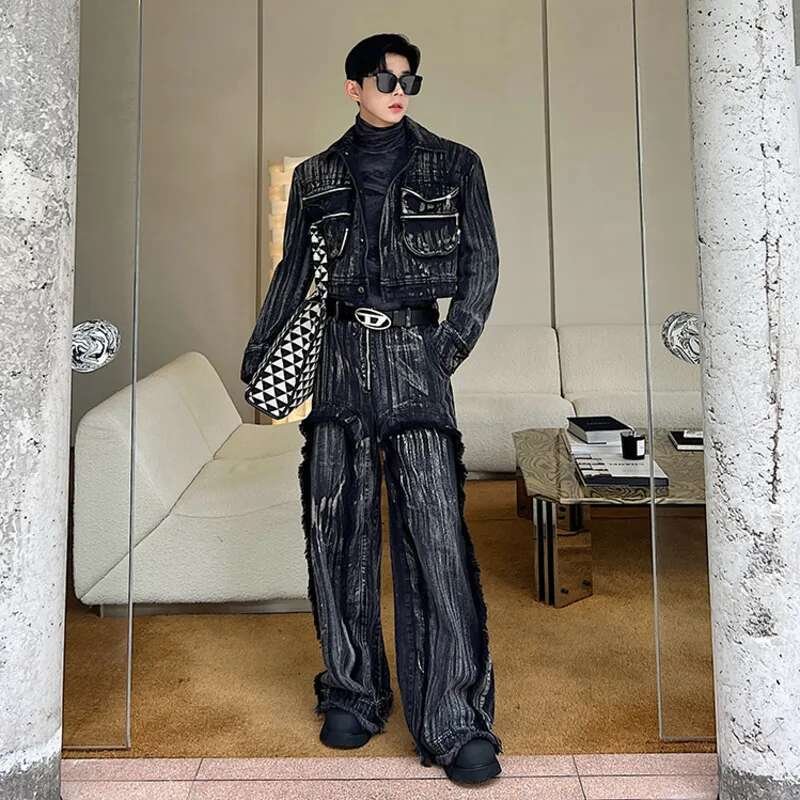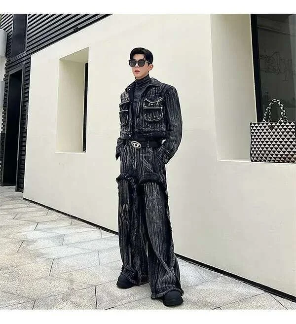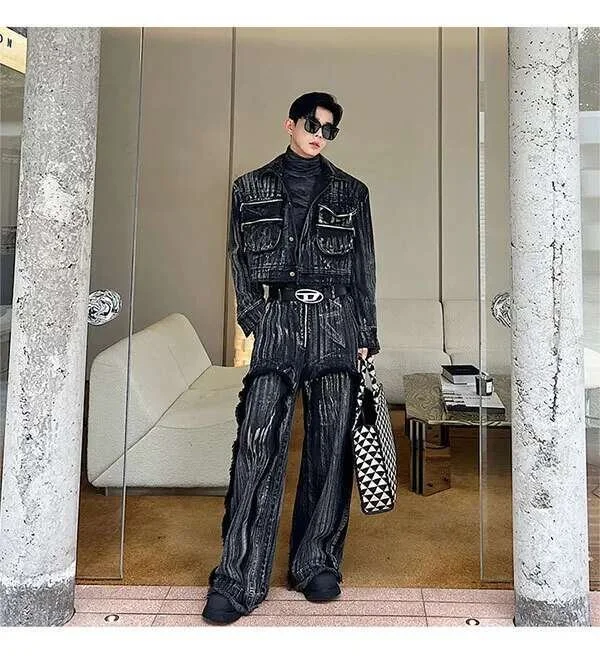 IEFB Dyed Hand Painted Denim Two Pieces Set
