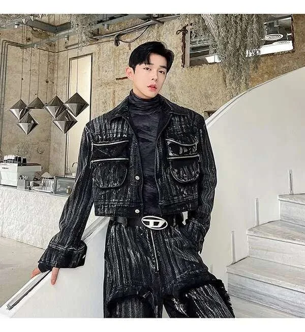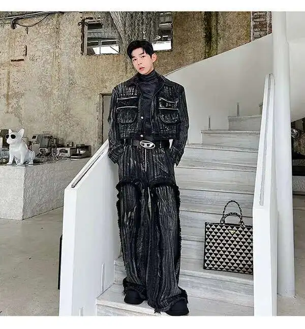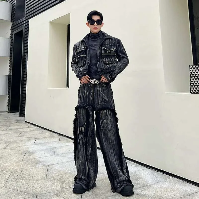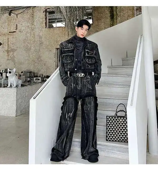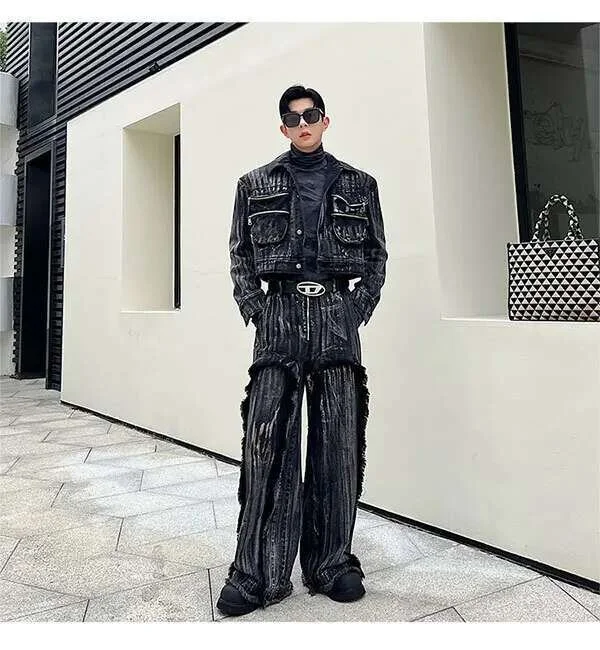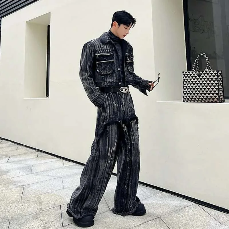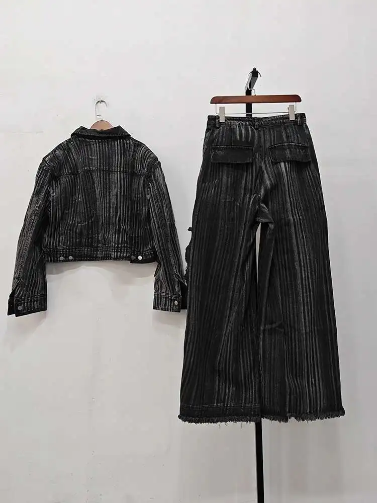 IEFB Dyed Hand Painted Denim Two Pieces Set
