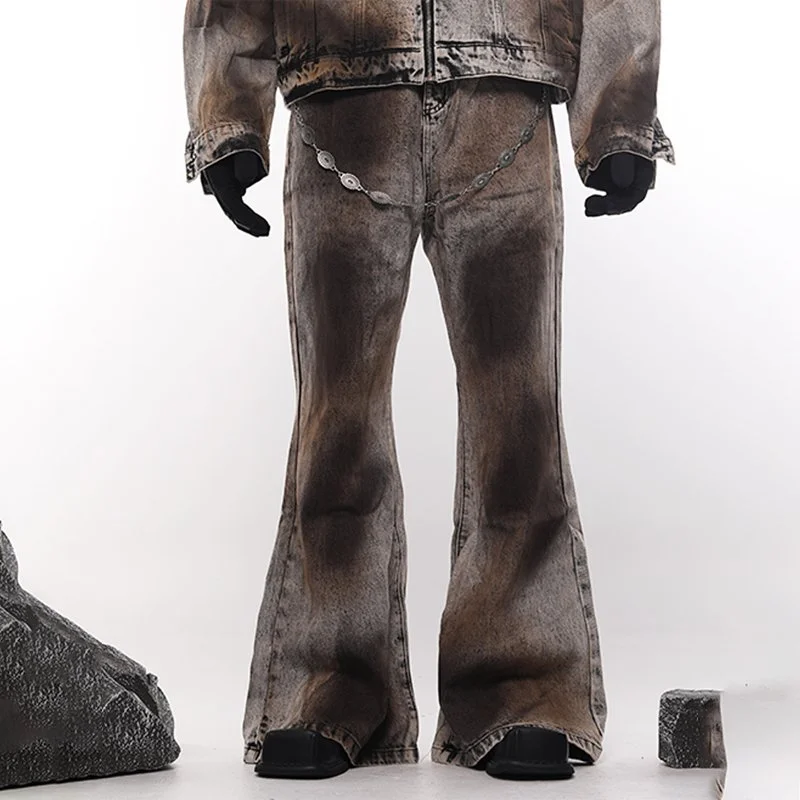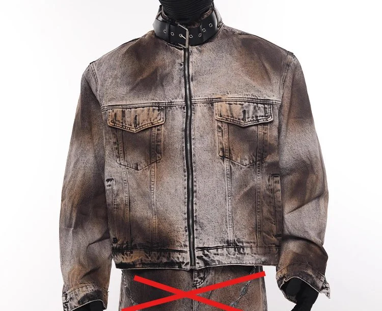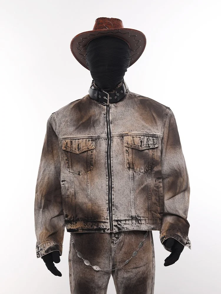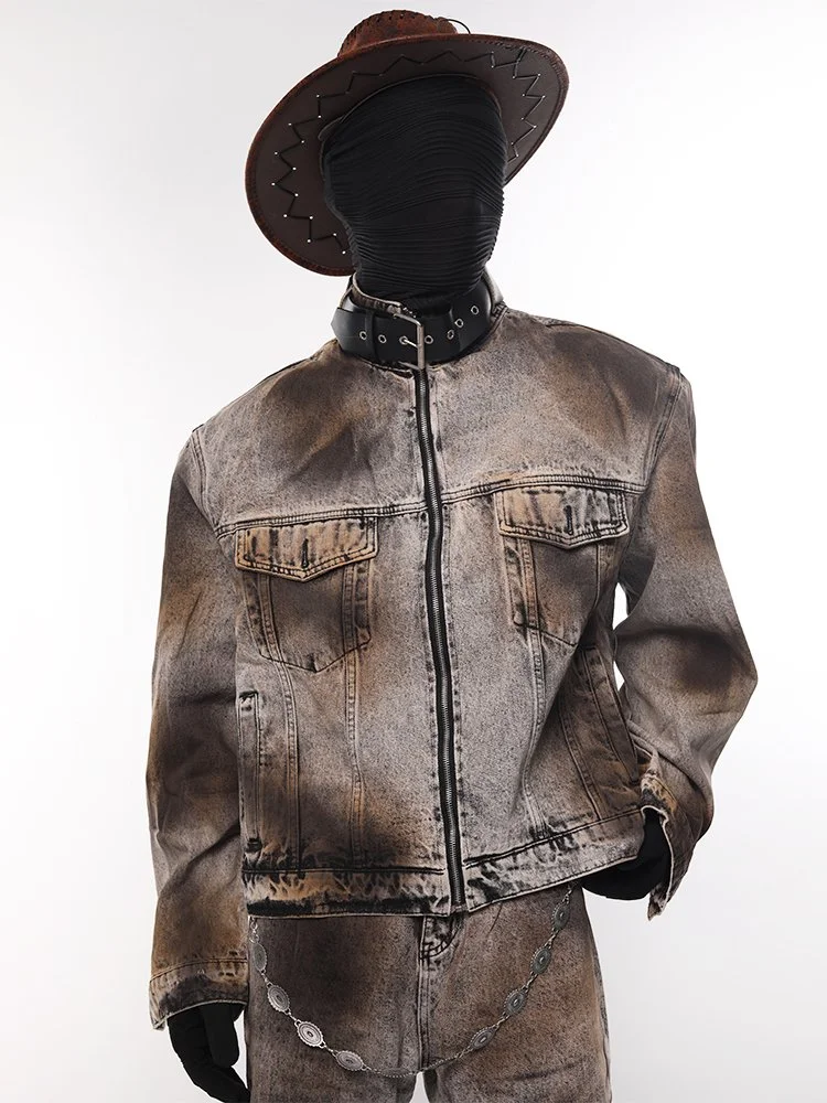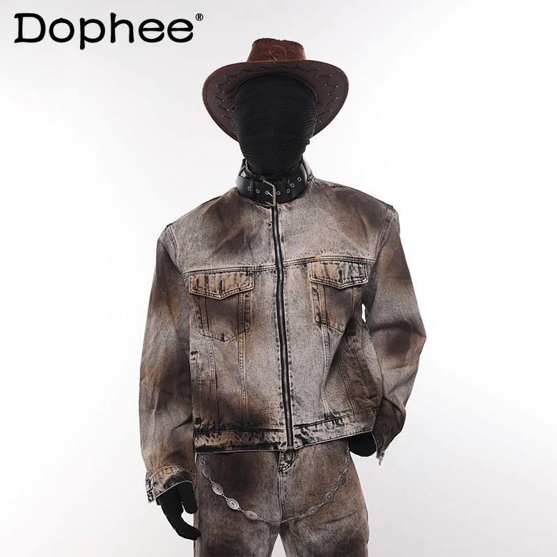 Men's 2025 Spring Autumn New American Style Two-piece Sets Masculinity Padded Shoulder Zipper Jackets Fashion Denim Pants Sets
