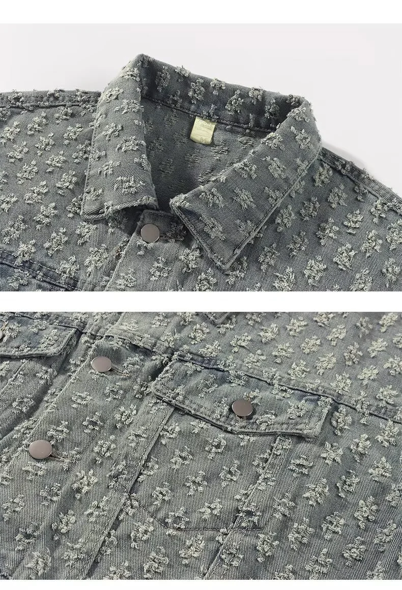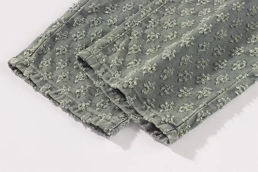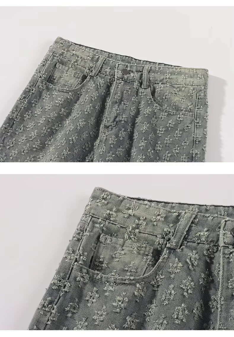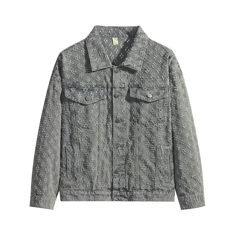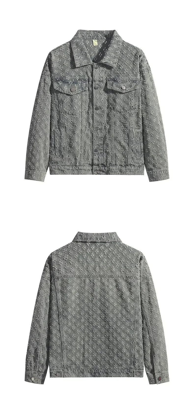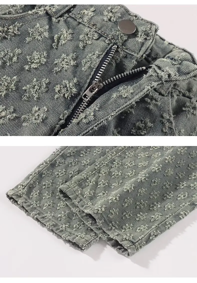 Men's Fashionable Hooked Floral Denim Set Pure Color Worn-In Look