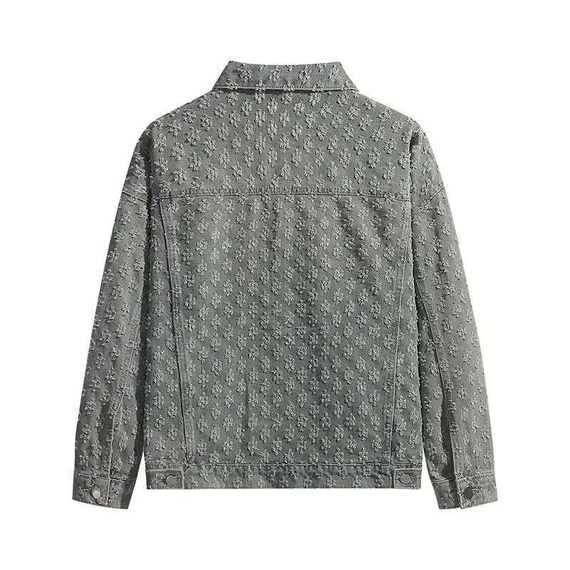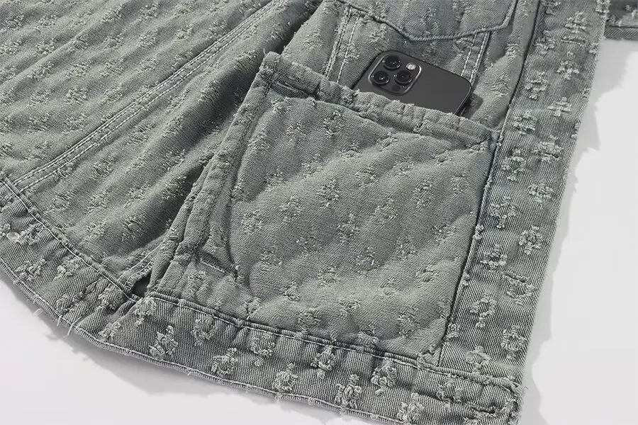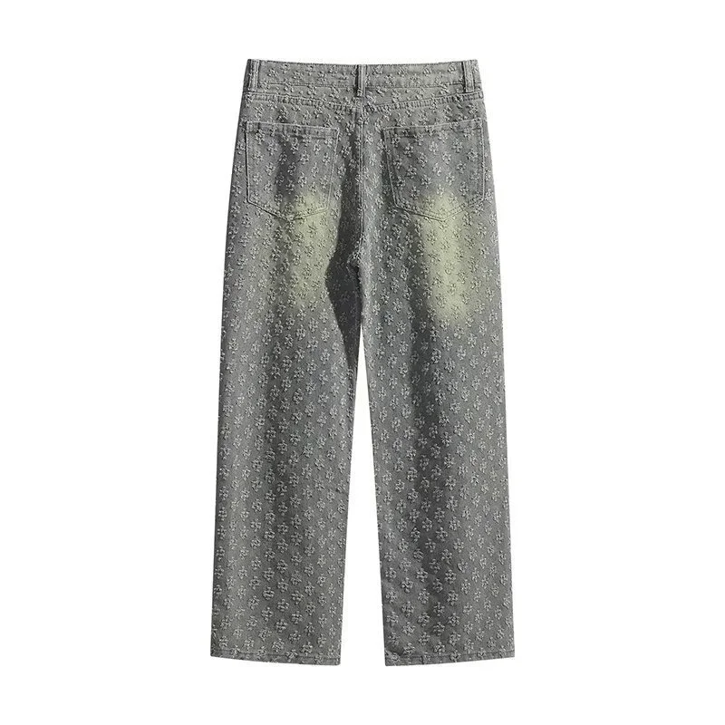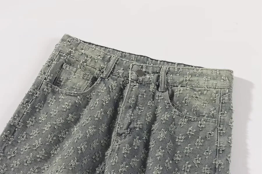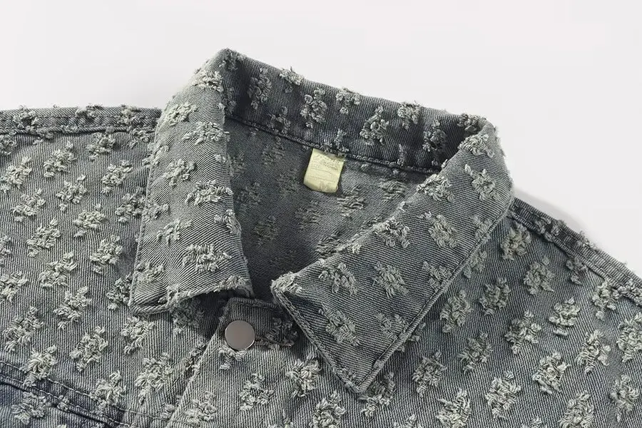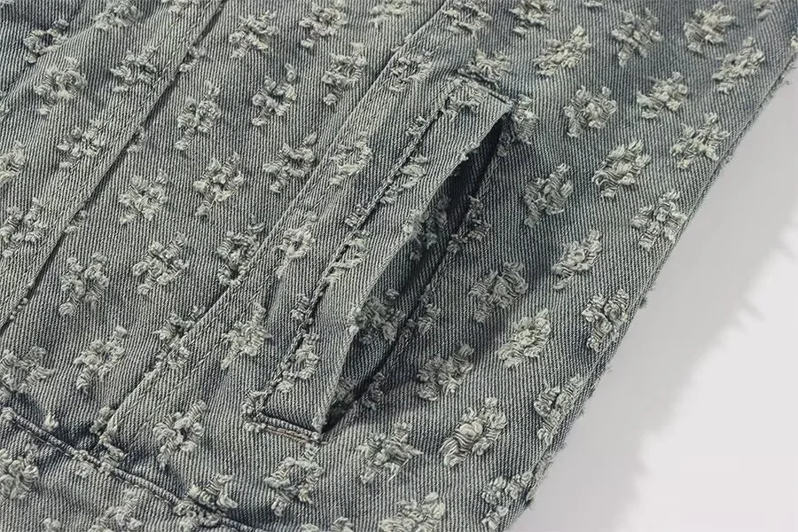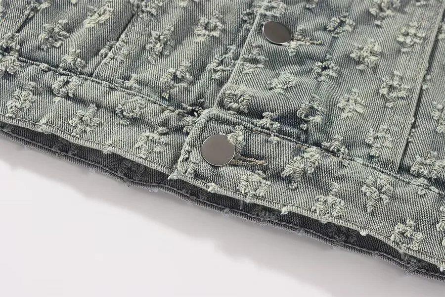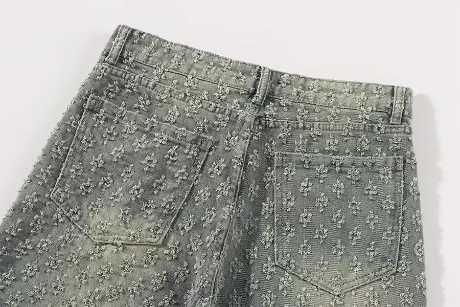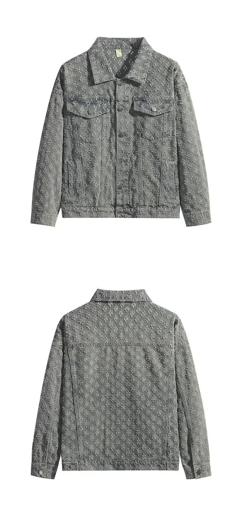 Men's Fashionable Hooked Floral Denim Set Pure Color Worn-In Look