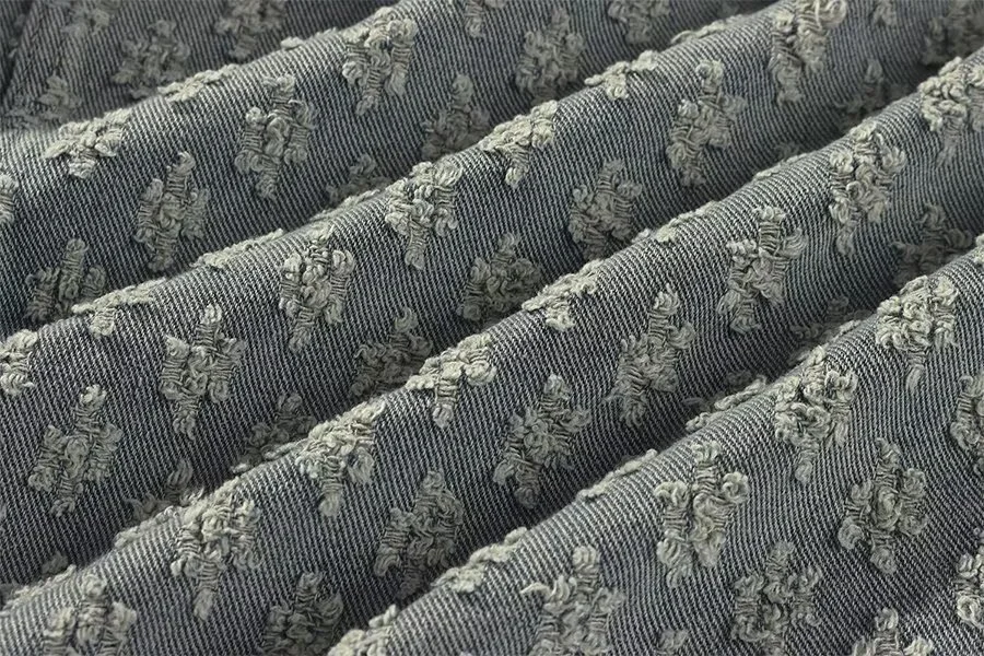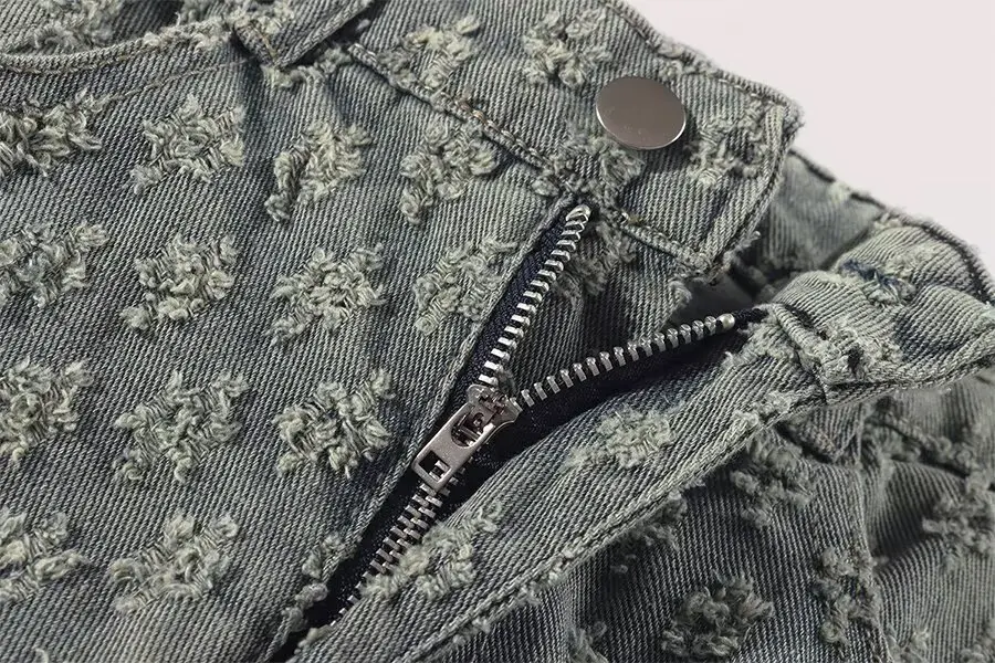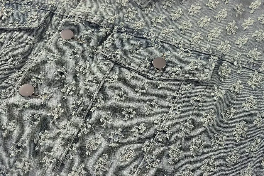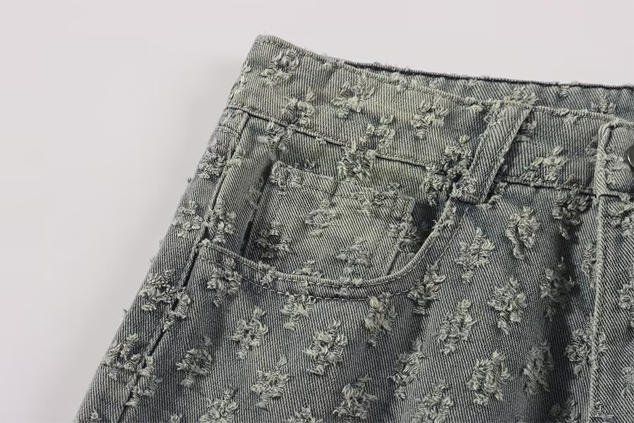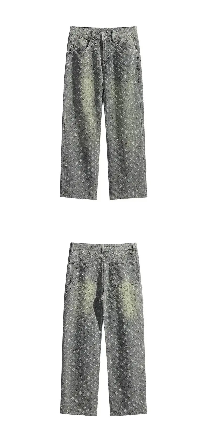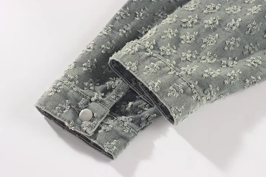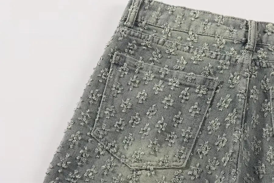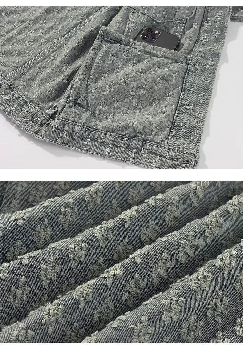Men's Fashionable Hooked Floral Denim Set Pure Color Worn-In Look
