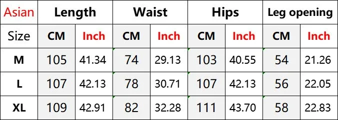 PANTS SIZE (Unit: CM)