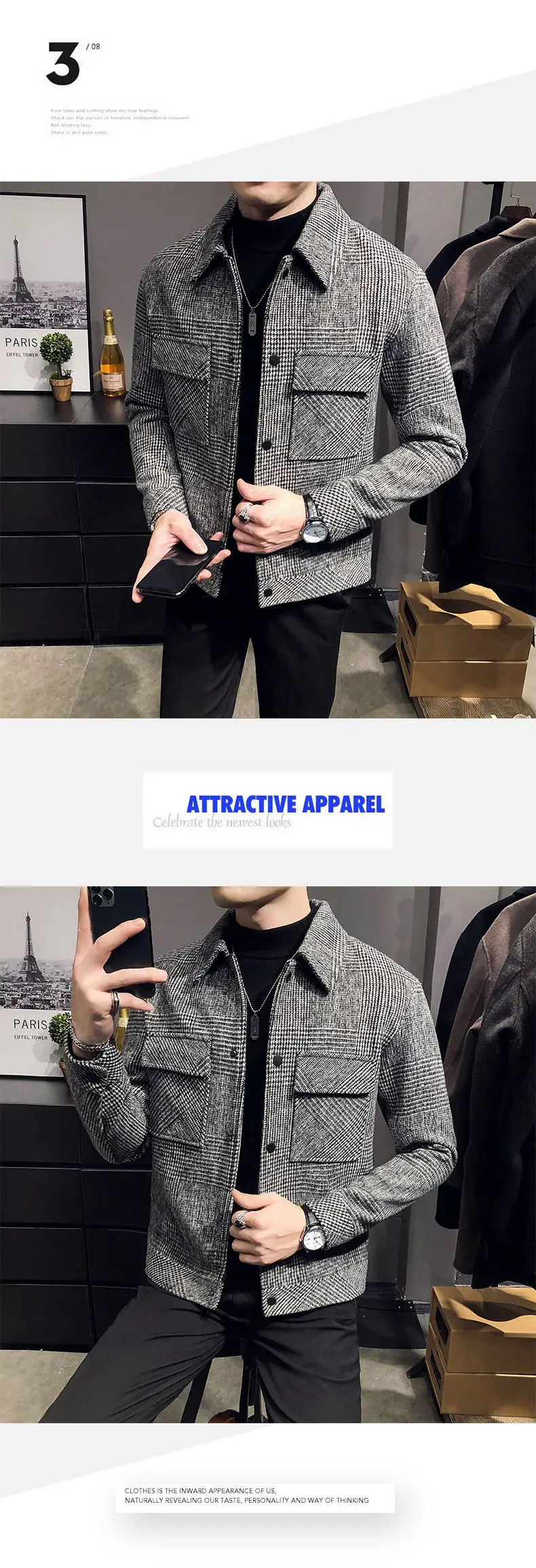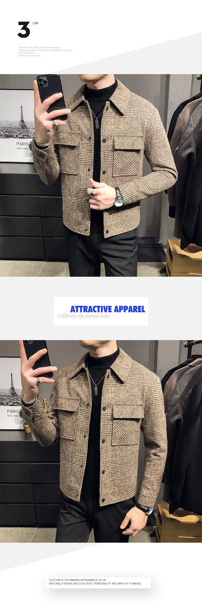 2024 Autumn/Winter Men Polo Neck Woolen Jacket