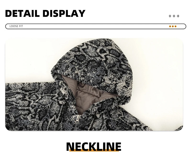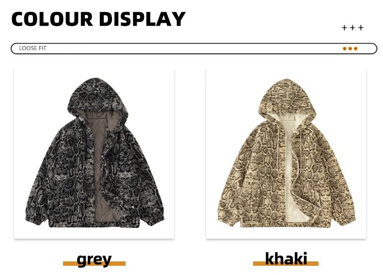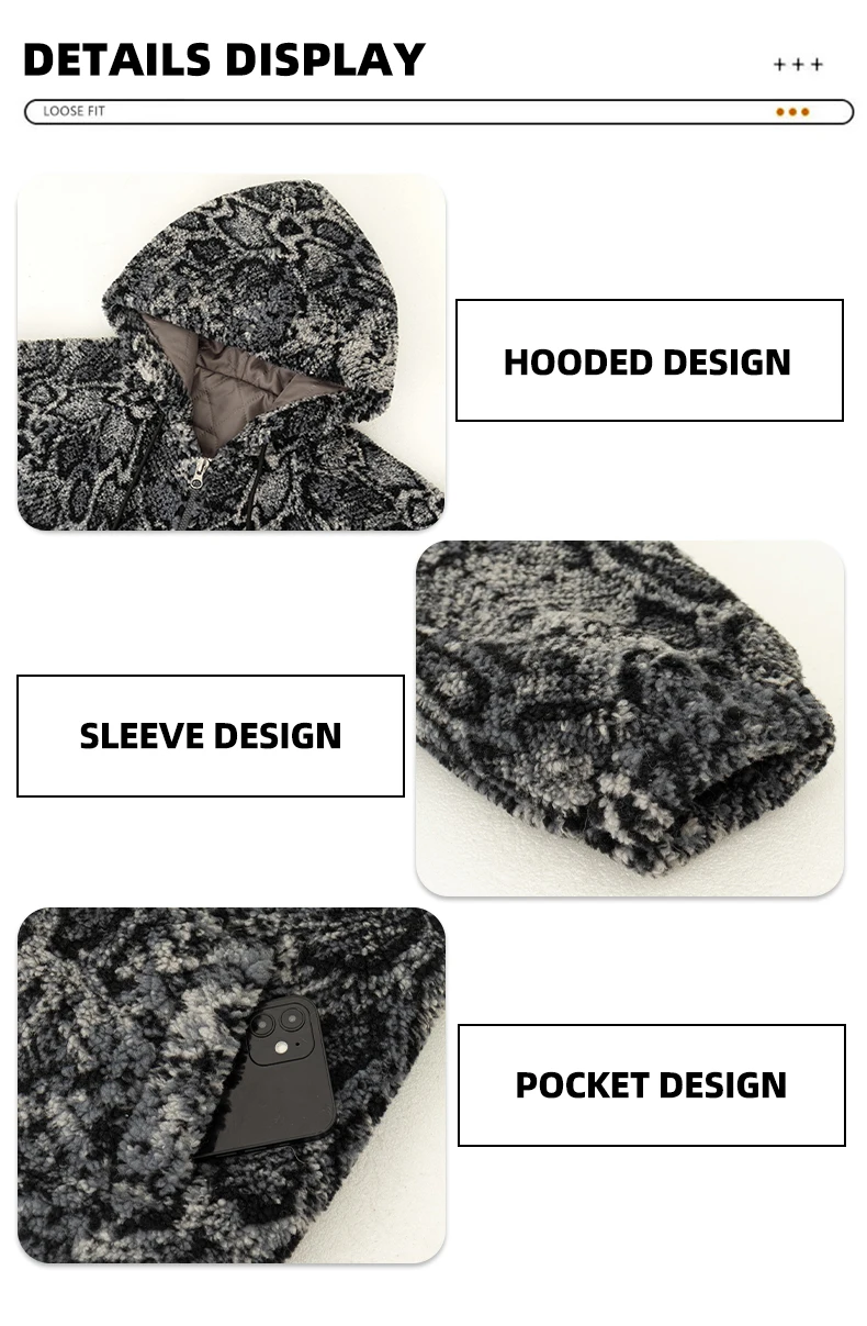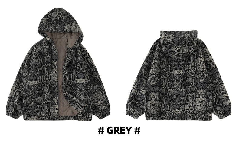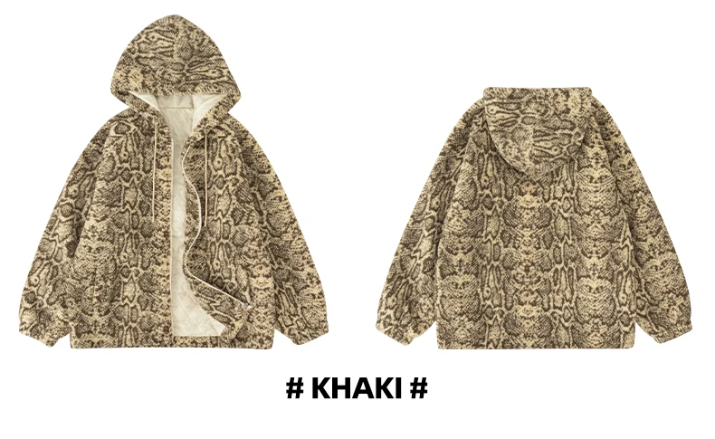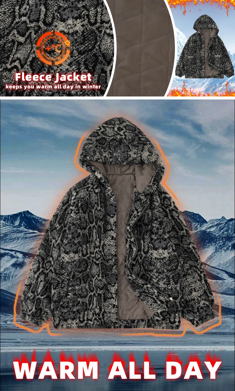 Autumn&Winter Snakeskin Hooded Fleece Zipper