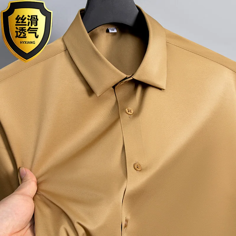 Business Long Sleeve Autumn Wrinkle-free Slim Fit Camisa Social Formal Soft Button-Up Top