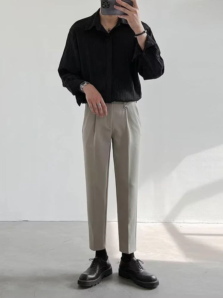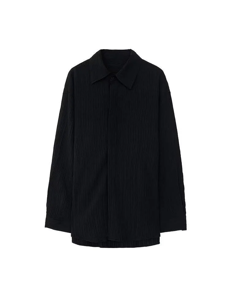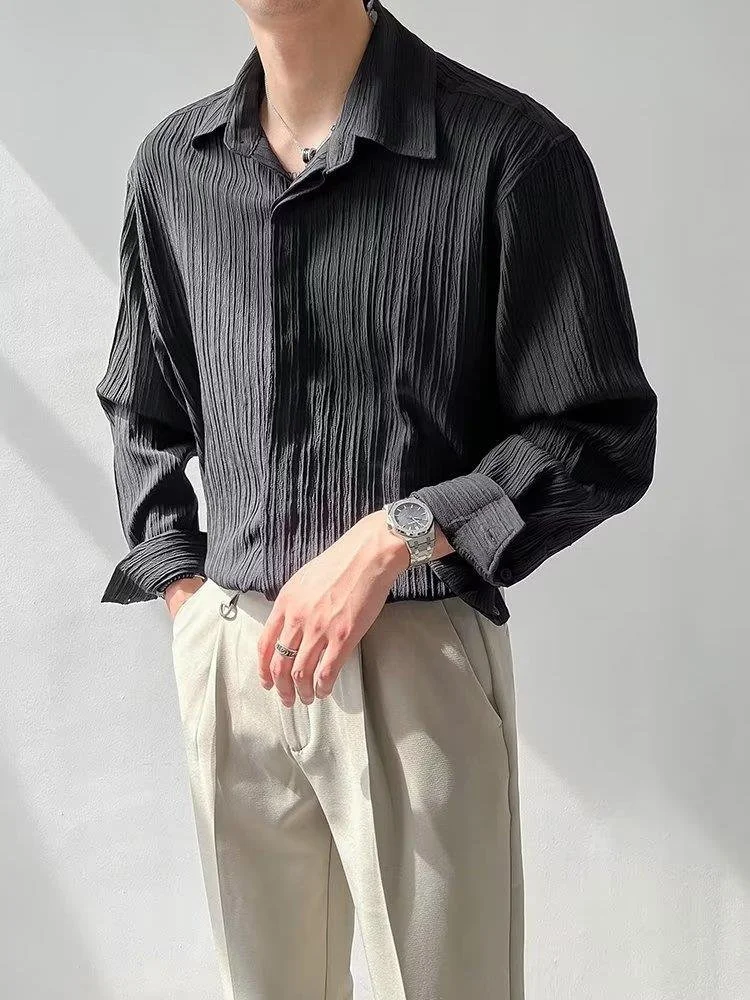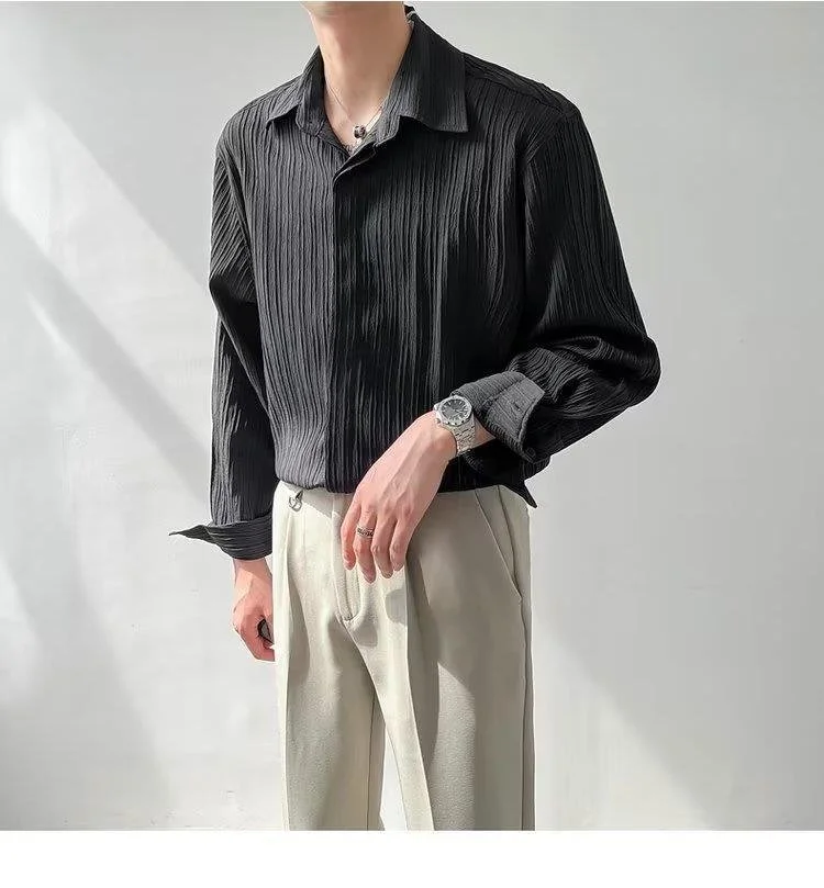 Men's Long Sleeve Suit Collar Casual Drapped Button-down Shirt