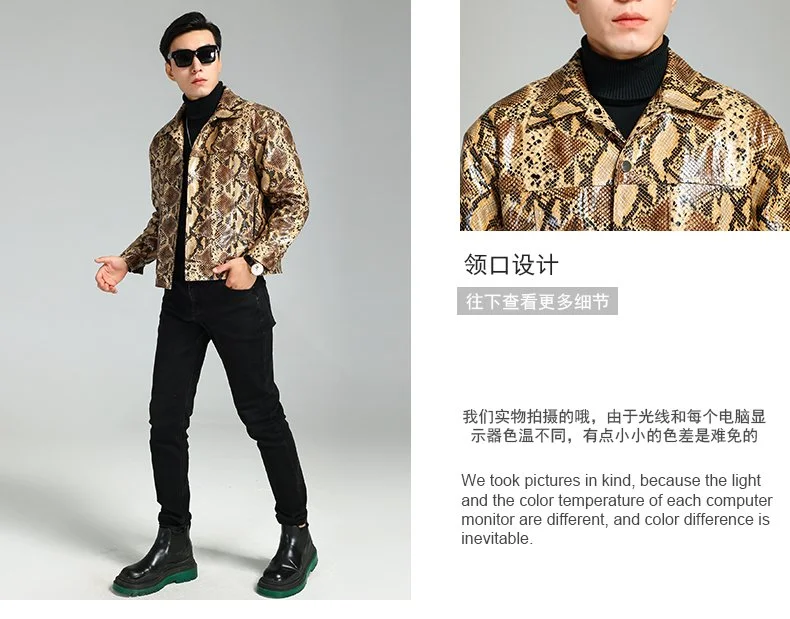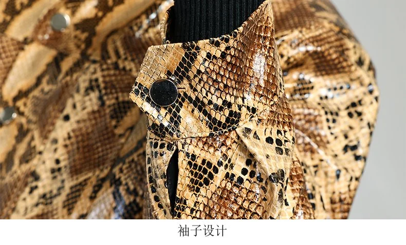 Nerazzurri Autumn Short Snakeskin Pu Leather Jacket