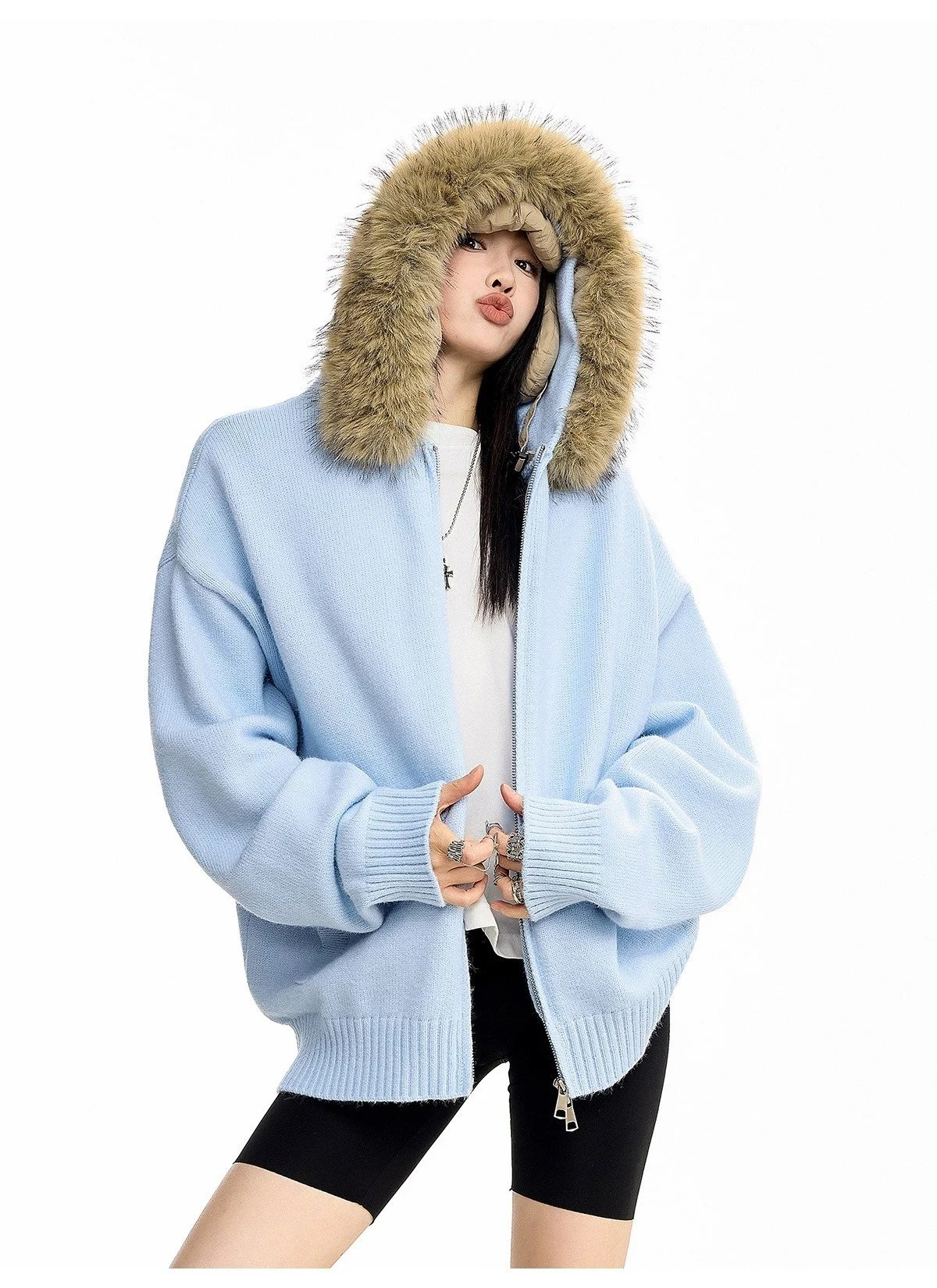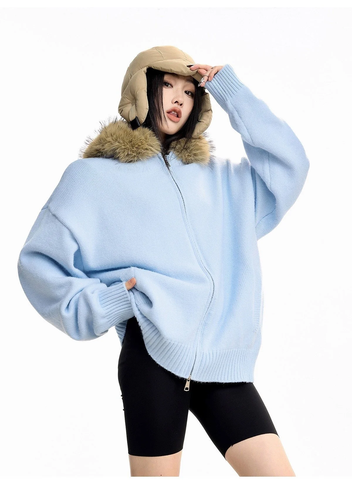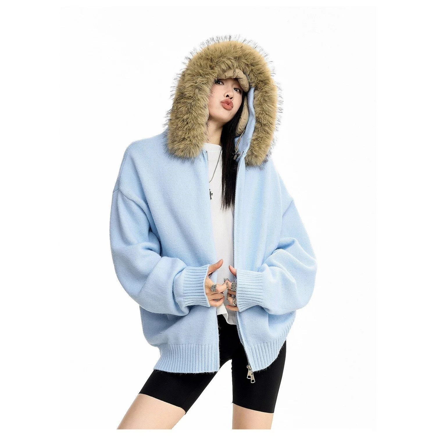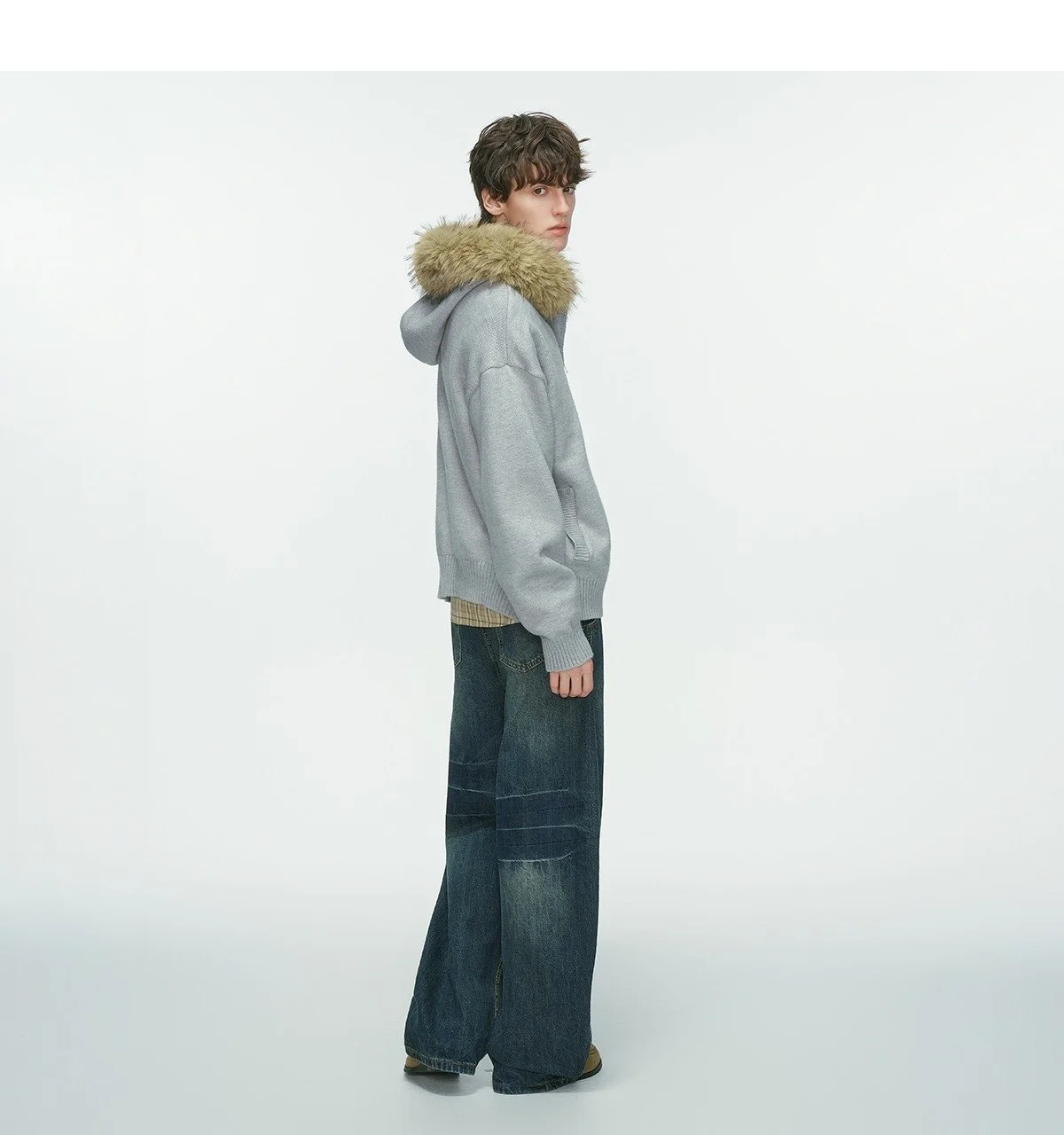 New Men's Winter Thickened Warm Detachable Fur Collar Knitted Open Cardigan