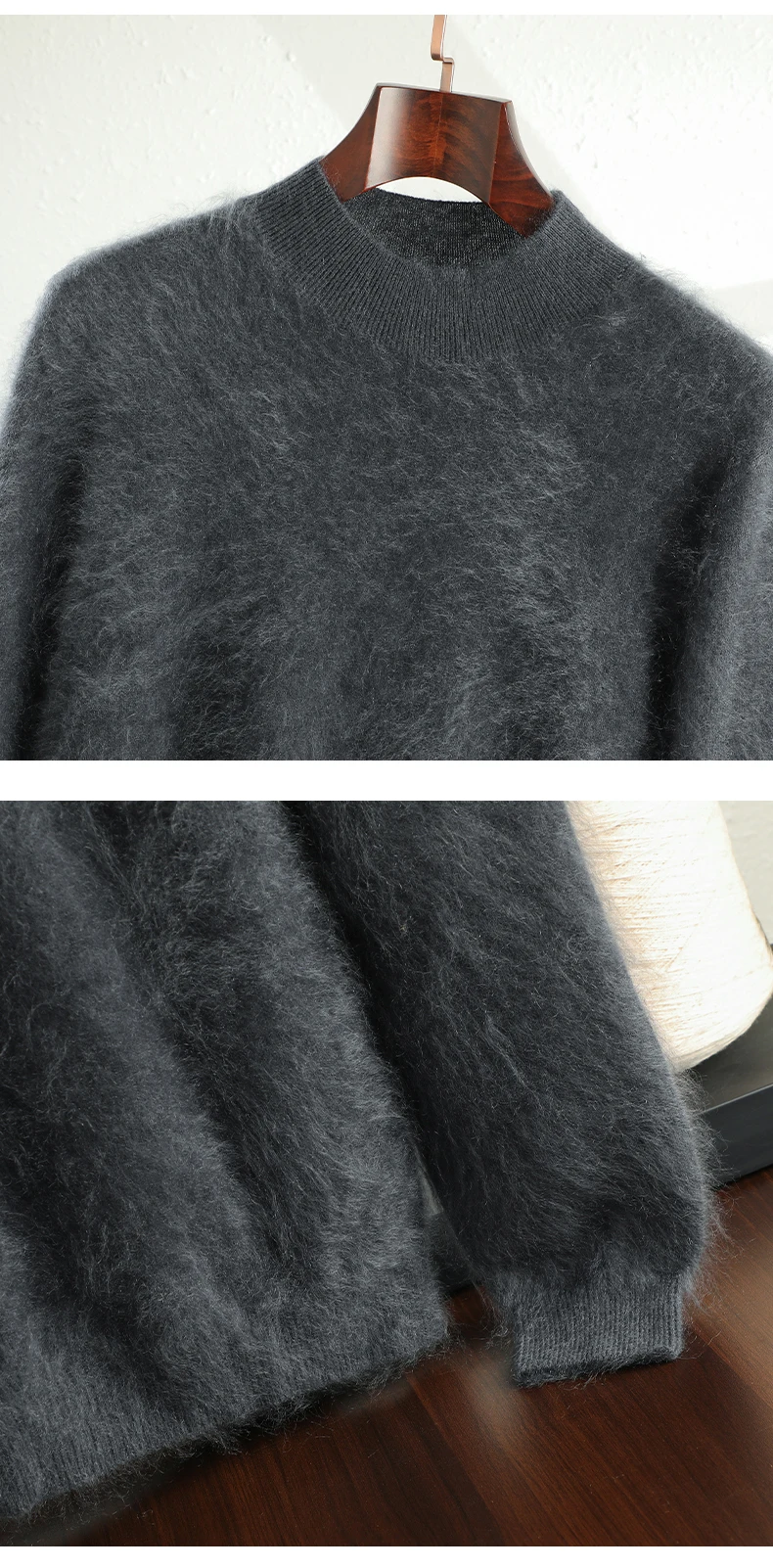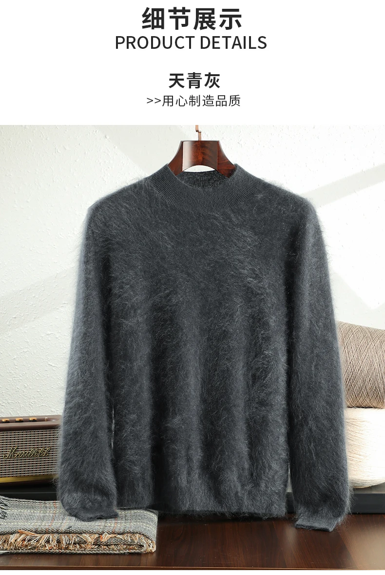 As illustrated in the pictures, the item features a luxuriously long, fur-like fluff, a plush cashmere sweater providing optimal warmth for the coldest days of winter. The yarn used to make this product is created through a specialized spinning and finishing process, ensuring that it is 100% natural cashmere and free from any artificial ingredients. It is renowned for its exceptional softness, skin-friendliness, non-irritation, non-allergenic quality, and superior warmth, which is due to its long pile.