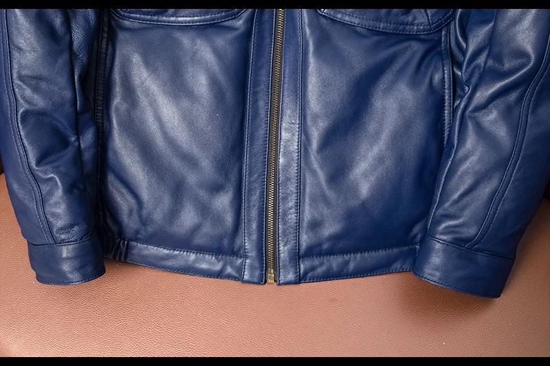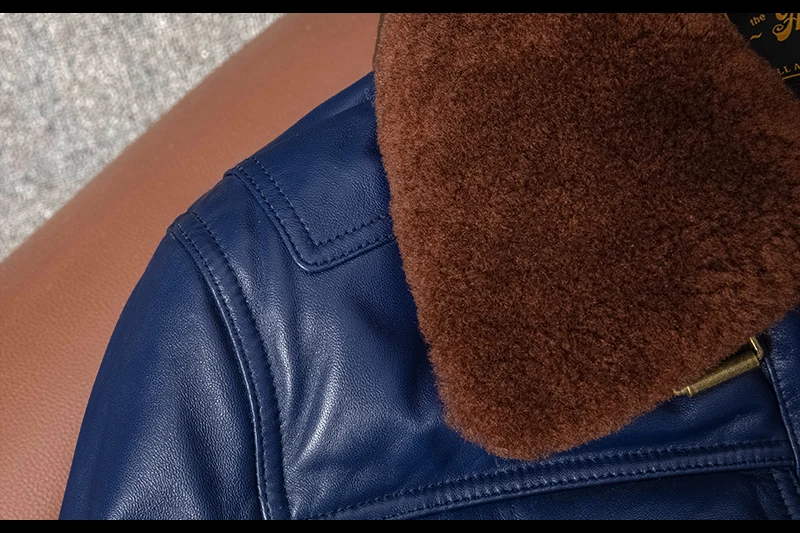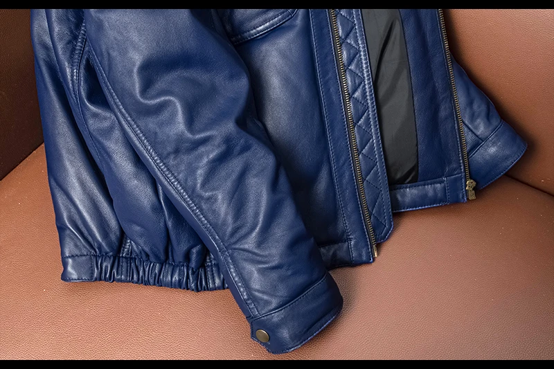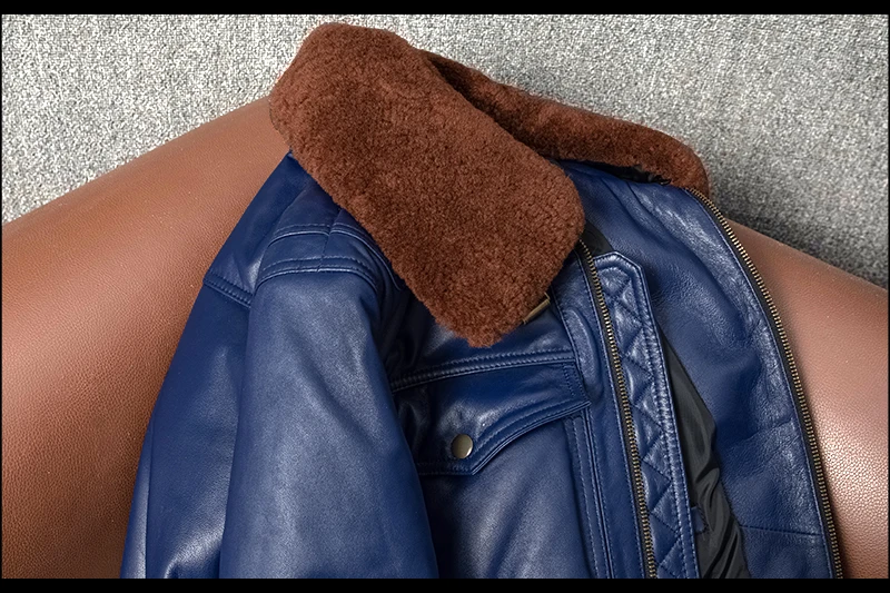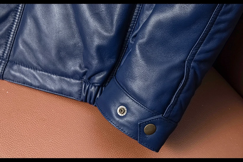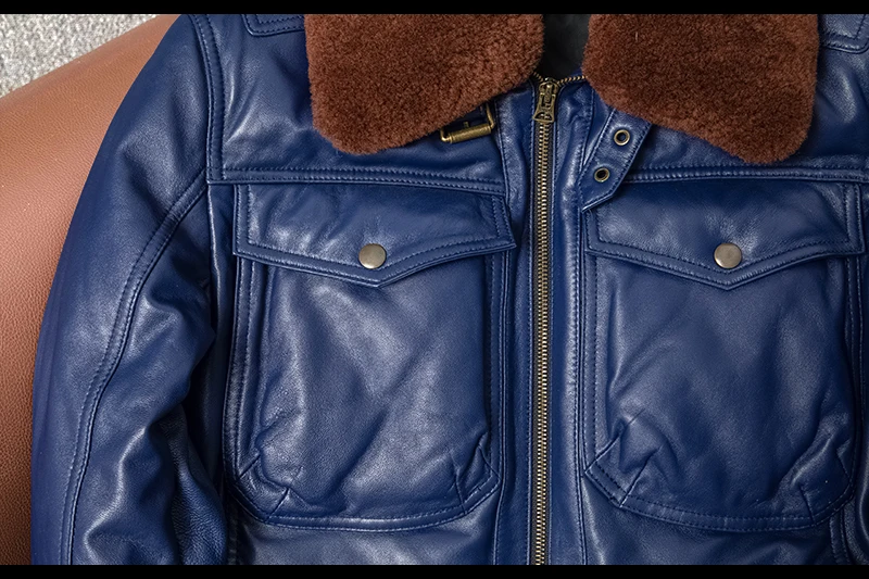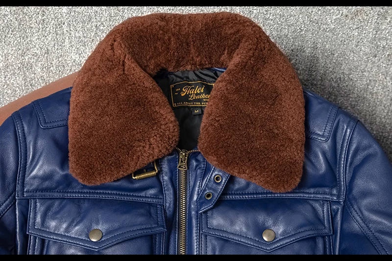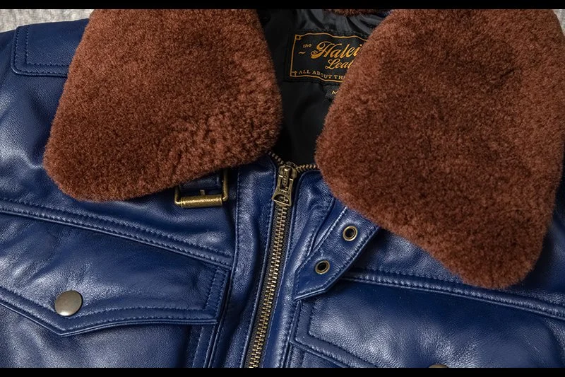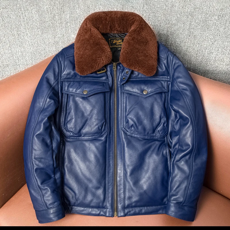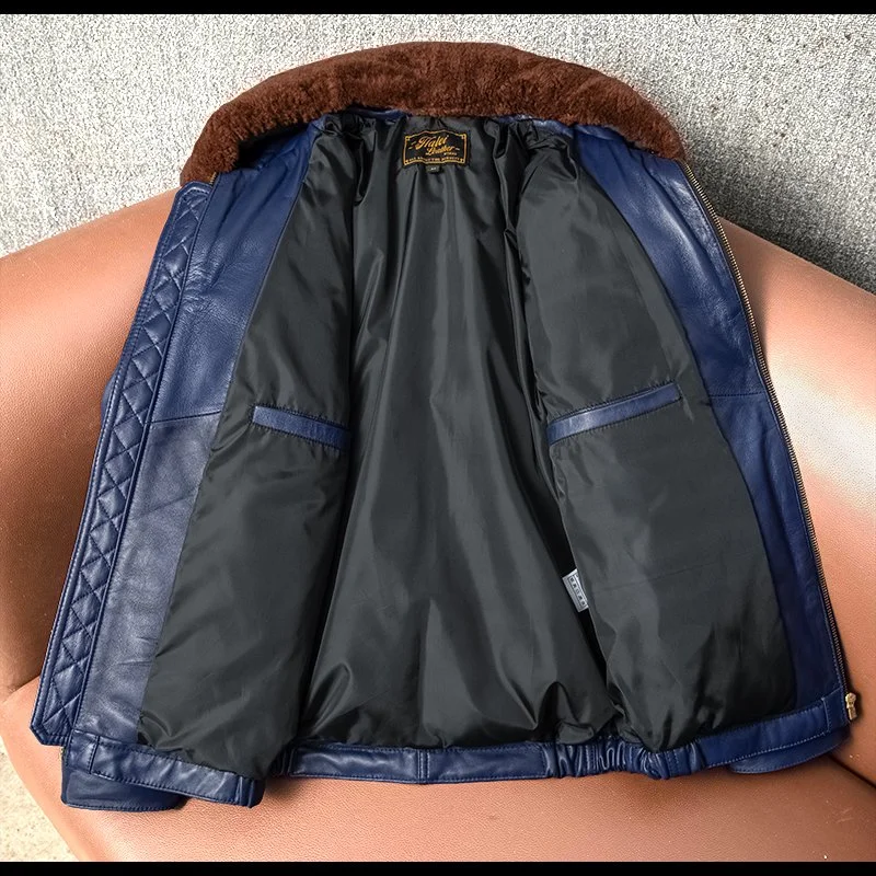 Real Leather Men's ort Fit Jaet with Fur Collar Windproof Warm Winter Coat