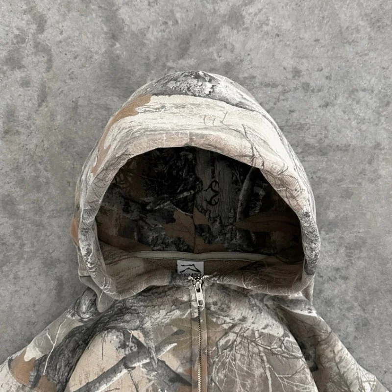 Y2K Retro zip up Hoodie Men Camouflage Pattern